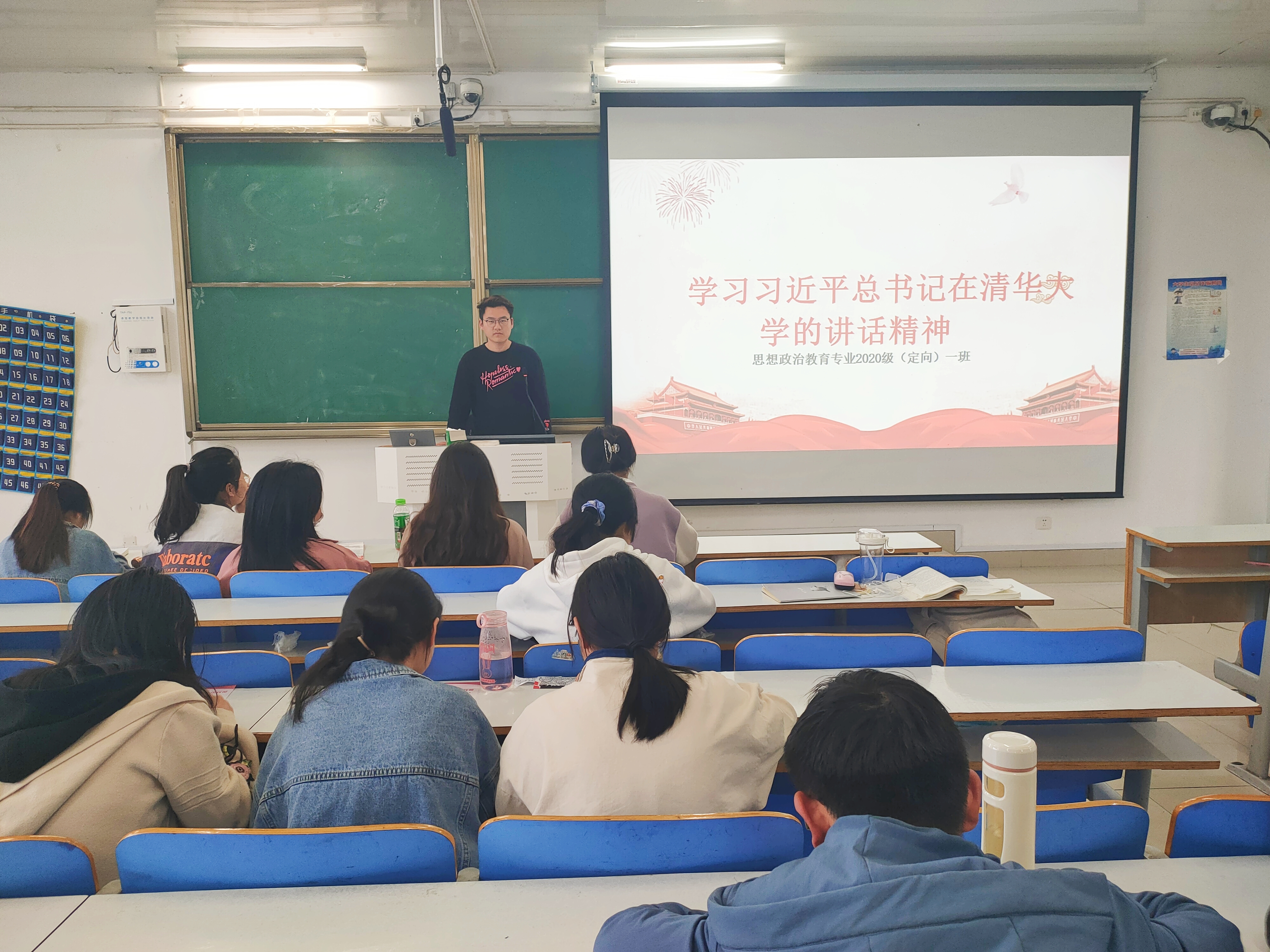 4月26日下午,ok138cn太阳集团529思想政治教育(定向)一班在社科楼514教室顺利举办“学习习总书记在清华大学考察的讲话精神”主题班会。ok138cn太阳集团529思想政治教育(定向)一班全体学生聆听了此次班会。班会由团支书朱紫峰主持。