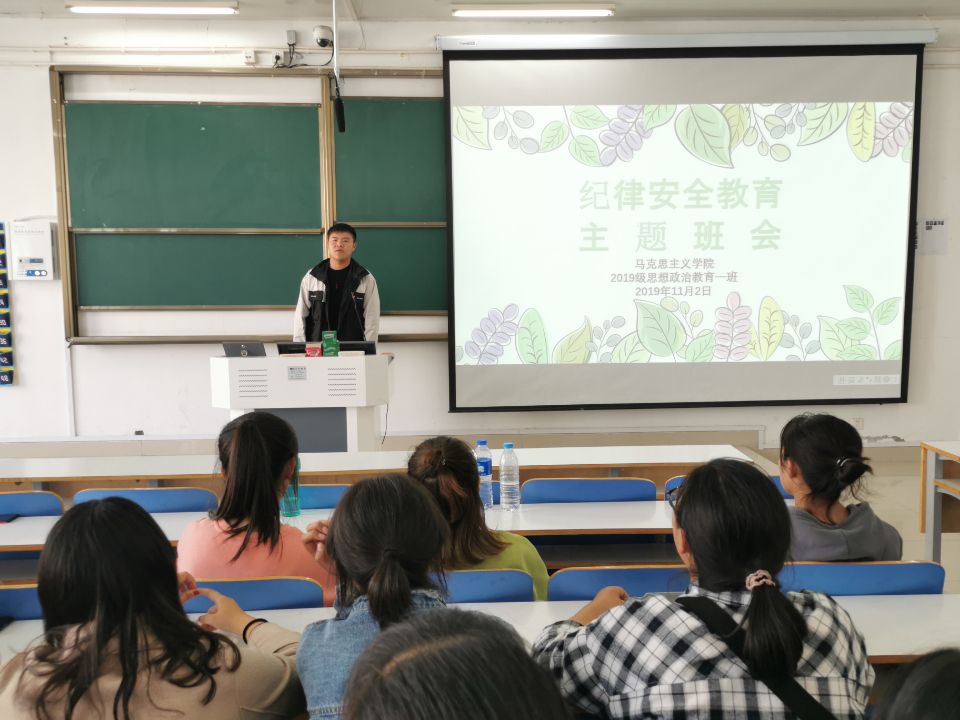 11月2日上午,ok138cn太阳集团5292019级思想政治教育一班在社科楼516教室召开纪律安全教育主题班会,2019级思想政治教育一班全体同学参加本次会议。会议由班长王民主持。