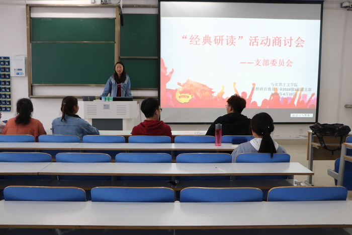 4月10日下午,ok138cn太阳集团5292018级思想政治教育一班在社科楼516教室顺利开展“经典研读”支部委员会。2018级思想政治教育一班全体支部委员共同参加此次会议。会议由团支书靳雨露主持。