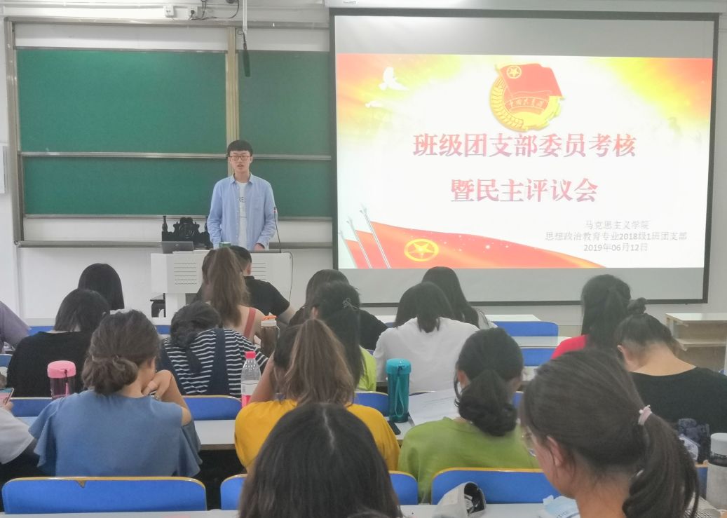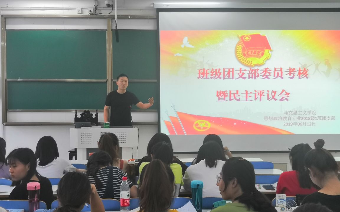 6月12日下午,ok138cn太阳集团5292018级思想政治教育一班在社科楼516教室顺利开展班级团支部委员考核暨民主评议会。团委书记曹栋、分团委学生会主席团及2018级第一团支部全体成员共同参加此次班会。班会由团支部副书记邢子豪主持。