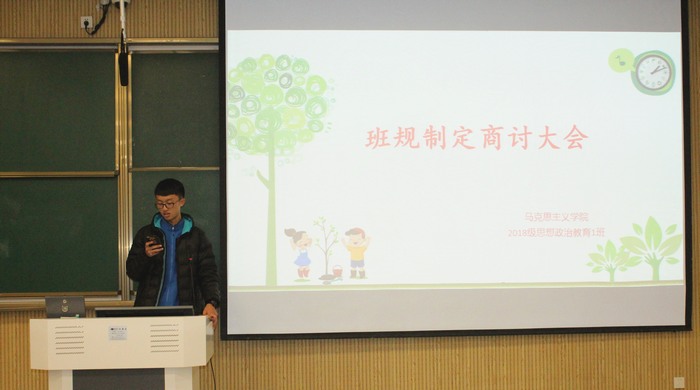 首先,靳雨露提出对团课和团小组会议召开的相关要求,强调要积极学习团的思想、贯彻团的精神,在日常生活中用更高的标准规范自身行为。随后,班长邢子豪发言指出班规班纪的制定需要委员们的共同参与,积极引导委员们对班规的制定建言献策,着重强调良好的纪律对打造优秀班集体的重要性。接着,学习委员靳雨对同学们前期学习情况进行总结,她提出在学习上应做到严格遵守课堂纪律,认真做好课堂笔记,保证听课质量,并对迟到早退等违纪现象制订了相关惩罚条例。其他委员依次发言陈述自身的工作职责,并对班规具体条例积极建言献策。最后,班规班纪在委员们的积极参与中初步确定。