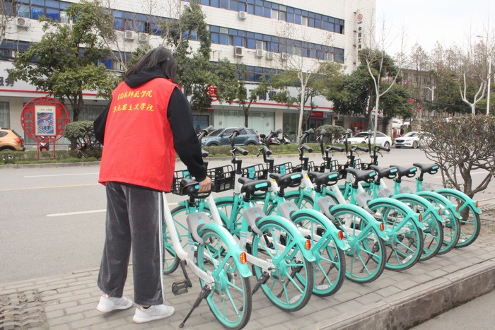 首先,靳雨露提出此次雷锋月志愿活动目的在于为同学们提供一个锻炼自我、服务他人的机会,培育学生奉献意识。她鼓励同学们用自己的实际行动弘扬“奉献、友爱、互助、进步”的志愿精神,促进自我的成长与能力的提升。随后,邢子豪发言要求同学们遵守纪律、注意交通安全,保护自身财产,严禁私自行动。接着,同学们以小组为单位在指定区域进行志愿活动,将乱停乱放的共享单车摆放整齐。同学们不顾恶劣的天气,无人叫苦,无人叫累,都乐在其中。最后,邢子豪清点班级人数,组织同学们有序返校。