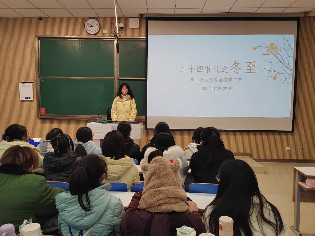 为弘扬中华优秀传统文化,普及节气文化知识,12月19日上午,ok138cn太阳集团5292023级思想政治教育二班在社科楼514教室举办“二十四节气之冬至”主题班会。班会由班长王慜初主持,全体二班同学参加。