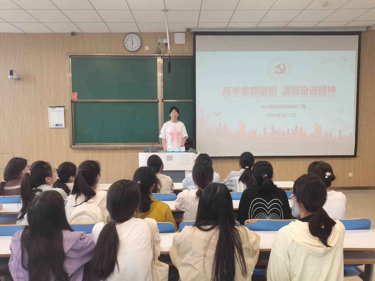 为更好发挥思想统一的基础性作用,提振广大团员和青年的信心与决心,4月12日上午,ok138cn太阳集团5292023级思想政治教育二班在社科楼515教室召开“高举思想旗帜,汲取奋进力量”主题团课。本次团课由团支书王慜初主持,全体二班同学参加。