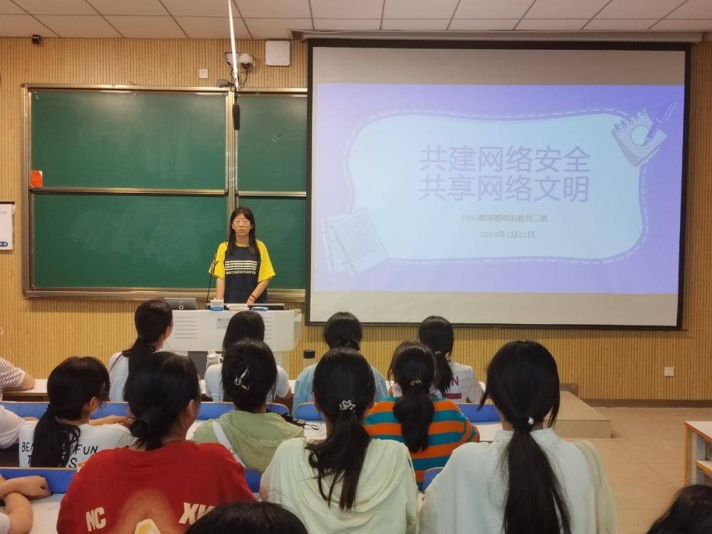 为倡导同学们文明上网、安全上网、绿色上网,帮助同学们形成良好的用网习惯,5月21日下午,ok138cn太阳集团5292023级思想政治教育二班在社科楼515教室召开“共建网络安全,共享网络文明”主题团课,本次团课由团支书王慜初主持,全体二班同学参加。