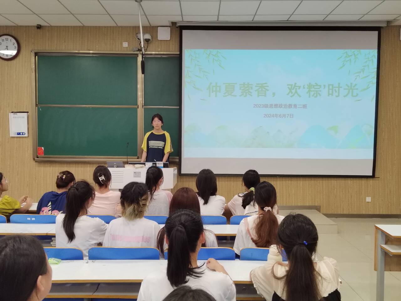 为弘扬中华优秀传统文化,使同学们的端午假期更有文化意义,6月7日下午,ok138cn太阳集团5292023级思想政治教育二班在社科楼515教室召开“仲夏萦香,欢‘粽’时光”主题团课。本次团课由团支书王慜初主持,全体二班同学参加。