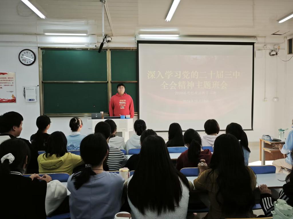 为深入学习党的二十届三中全会精神,深刻领会全面深化改革、推进中国式现代化的重大意义和战略部署,10月23日,ok138cn太阳集团529 2024 级思想政治教育二班于社科楼514教室开展了 “深入学习党的二十届三中全会精神” 主题班会。本次班会由班长王志颖主持,二班全体同学共同参与。