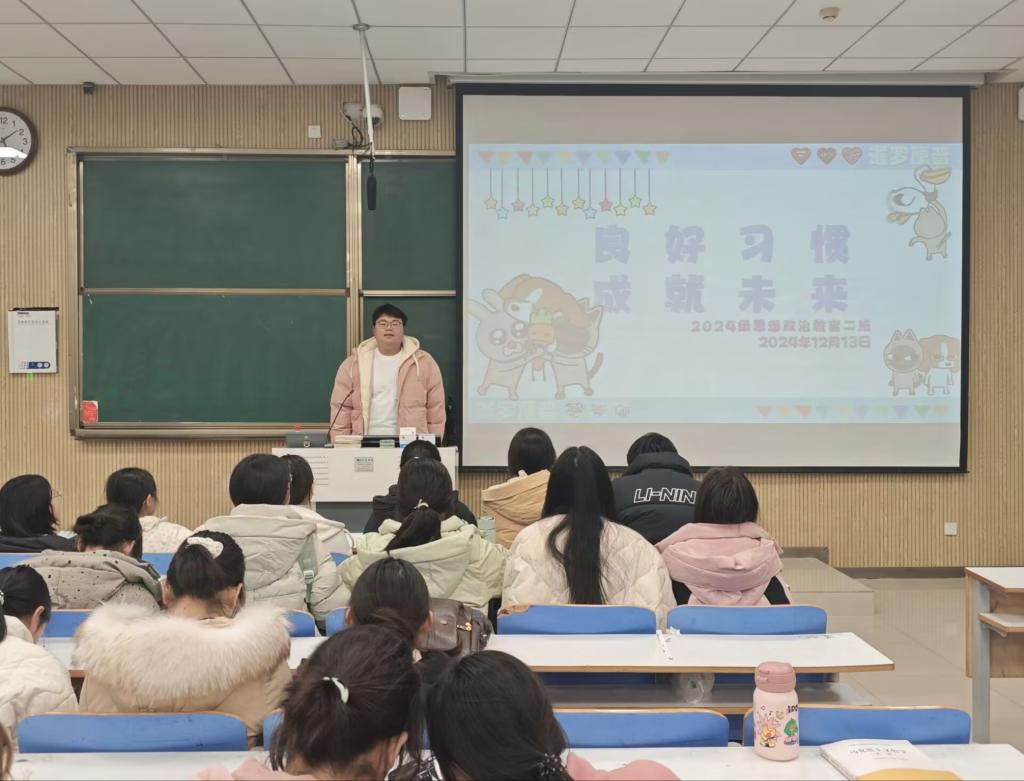 为引导学生养成良好的学习生活习惯,提升自我管理能力,12月12日下午,ok138cn太阳集团5292024级思想政治教育二班在社科楼515教室举办了“良好习惯,成就未来”主题班会。本次班会由班长王志颖主持,二班全体同学共同参与。