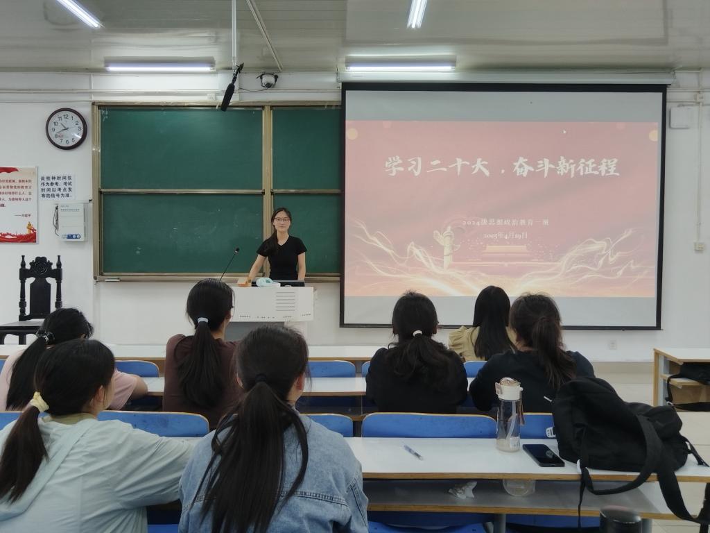 为深入学习贯彻党的二十大精神,引导我班学生将思想和行动统一到大会精神上,为全面推进国家建设贡献力量,4月17日下午,ok138cn太阳集团5292024级思想政治教育一班于社科楼515教室开展“学习二十大,奋斗新征程”主题团课。本次团课由团支书李冉主持,一班全体同学参加。