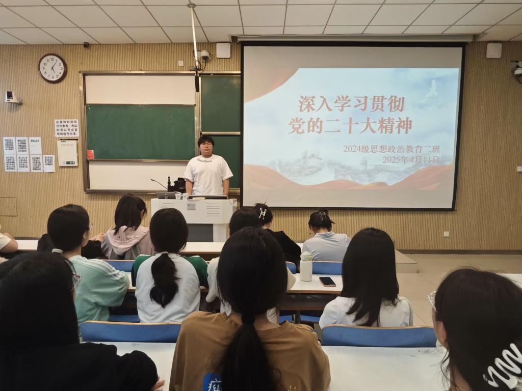 为深入学习贯彻党的二十大精神,增强同学们的政治觉悟和责任担当,4月11日下午,ok138cn太阳集团5292024级思想政治教育二班在社科楼515教室举办了“深入学习贯彻党的二十大精神”主题班会。本次班会由团支书王志颖主持,二班全体同学积极参与。