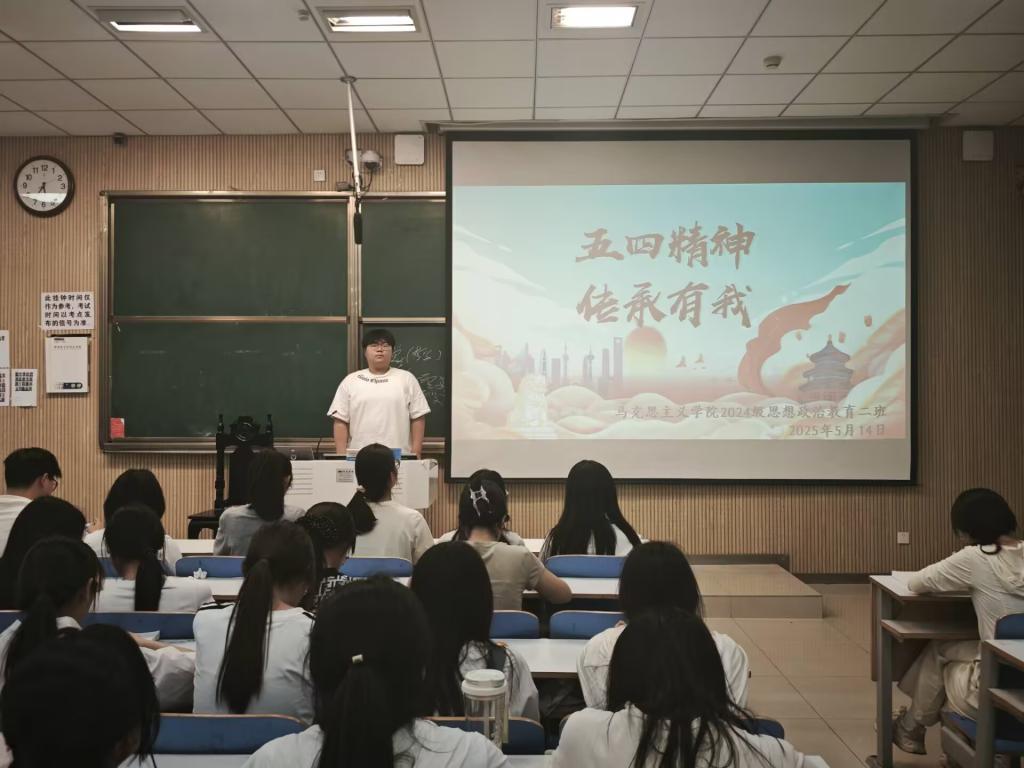 为深入学习贯彻五四精神,激励青年学生继承和发扬爱国、进步、民主、科学的优良传统,5月14日下午,ok138cn太阳集团5292024级思想政治教育二班在社科楼515教室开展了“五四精神,继承有我”主题团课。本次班会由团支书王志颖主持,二班全体同学共同参与。