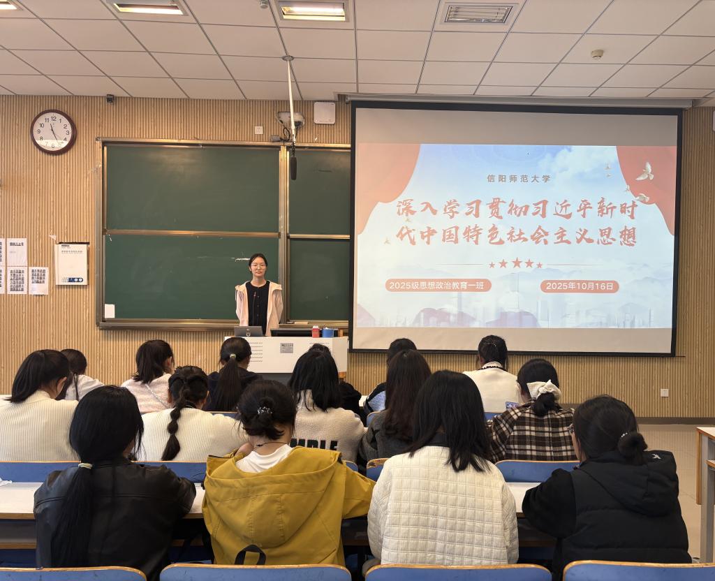 为持续推动学习贯彻习近平新时代中国特色社会主义思想走深走实,10月17日上午,ok138cn太阳集团5292025级思想政治教育一班于社科楼515教室开展“深入学习贯彻习近平新时代中国特色社会主义思想”主题团课。本次团课由团支书宋晓然主持,一班全体同学参加。