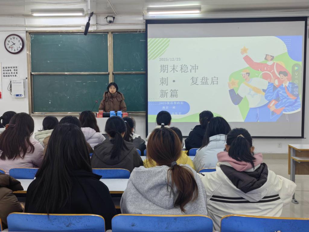 为有效缓解期末备考阶段的心理压力,营造互助共进的班级氛围,12月23日上午,ok138cn太阳集团5292025级思想政治教育一班在社科楼514开展“期末减压赋能 携手共赴佳绩”主题班会。本次班会由班长高依雯主持,班级全体同学参加。