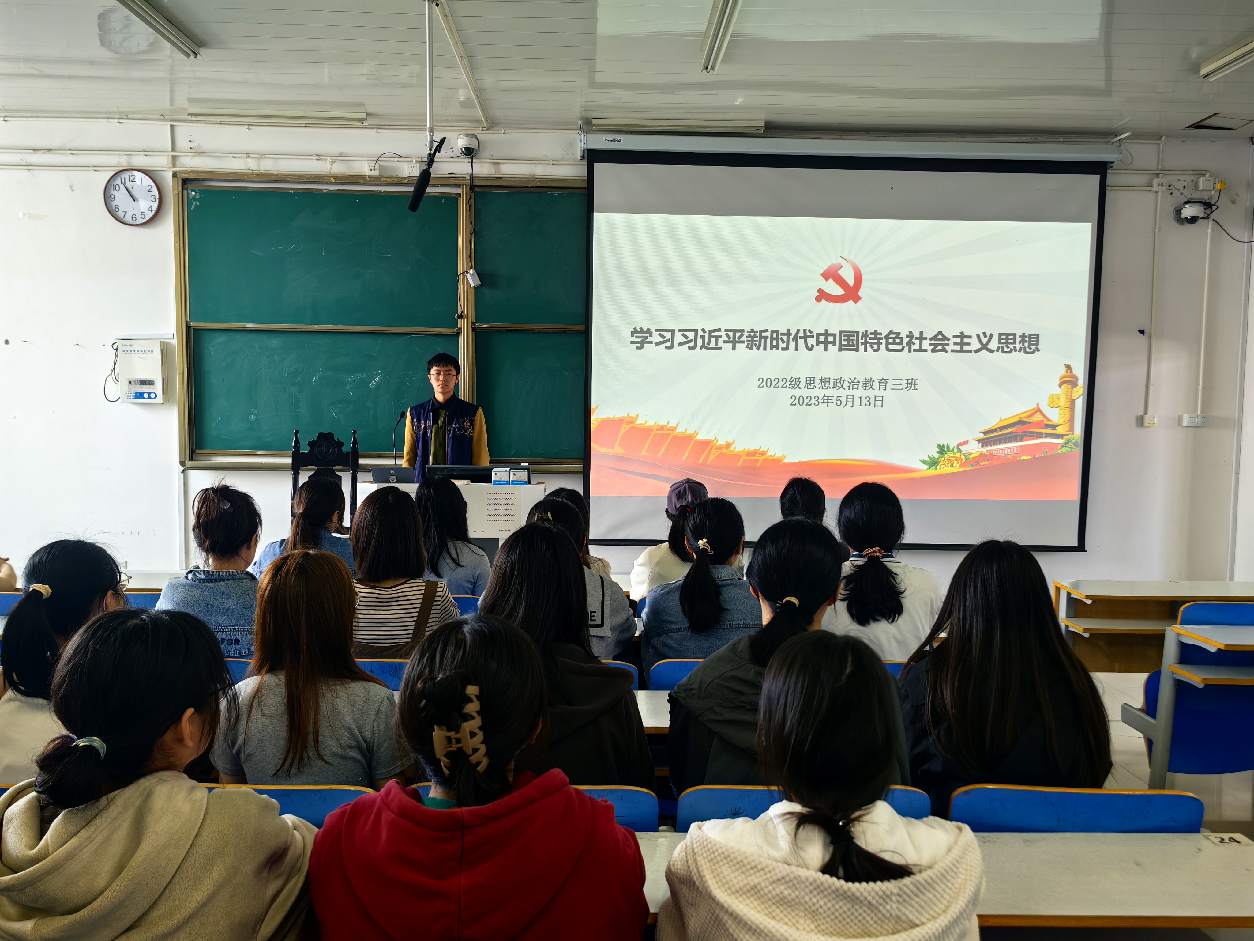 5月13日下午,ok138cn太阳集团5292022级思想政治教育三班在社科楼515教室召开学习习近平新时代中国特色社会主义思想主题团课。我院2022级思想政治教育三班全体成员共同参加此次团课。团课由团支书余浩洋主持。