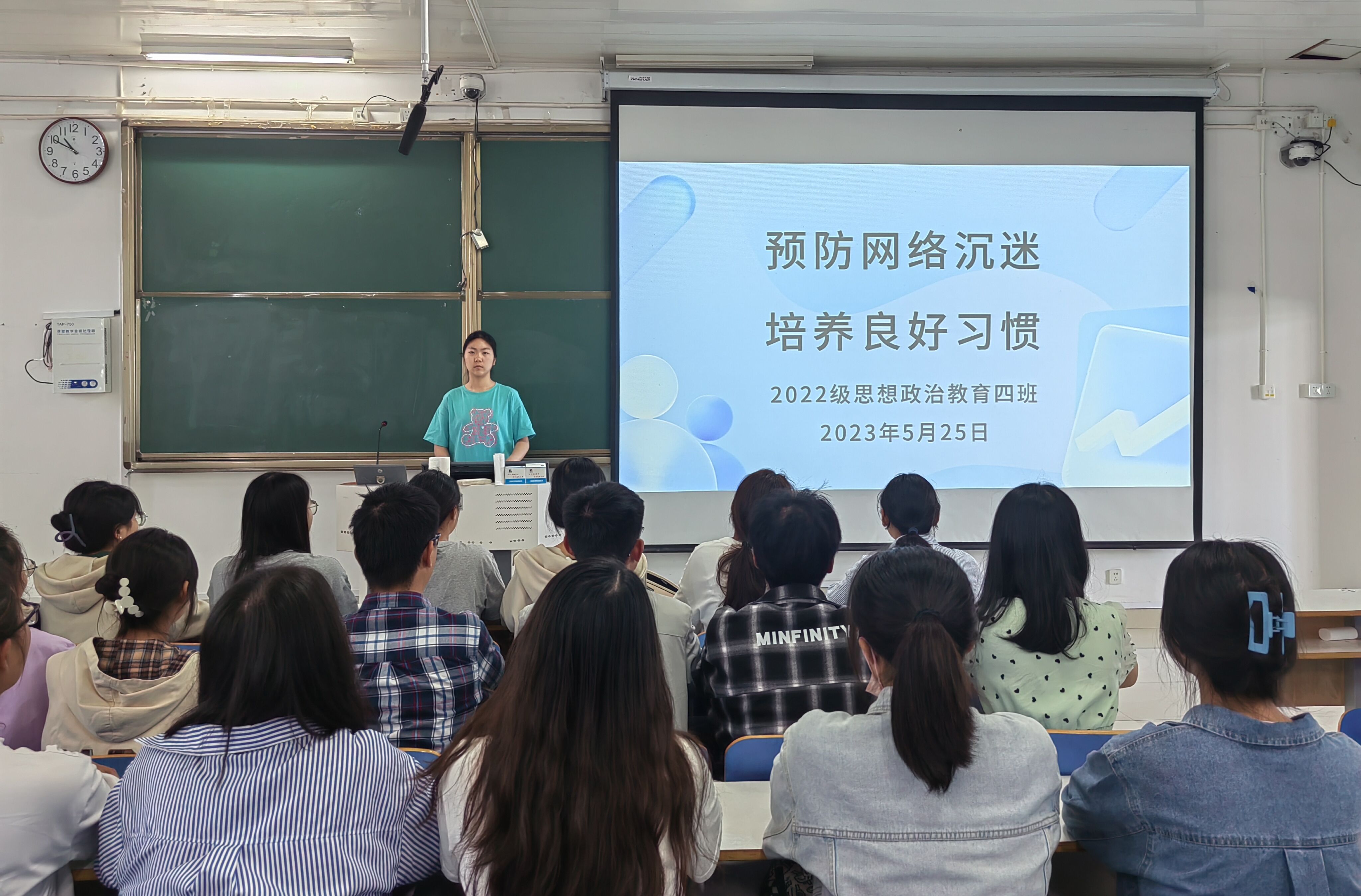 5月25日上午,ok138cn太阳集团5292022级思想政治教育四班在社科楼514教室召开“预防网络沉迷,培养良好习惯”主题班会,我院2022级思想政治教育四班全体同学参与本次班会。班长牛志杰主持班会。