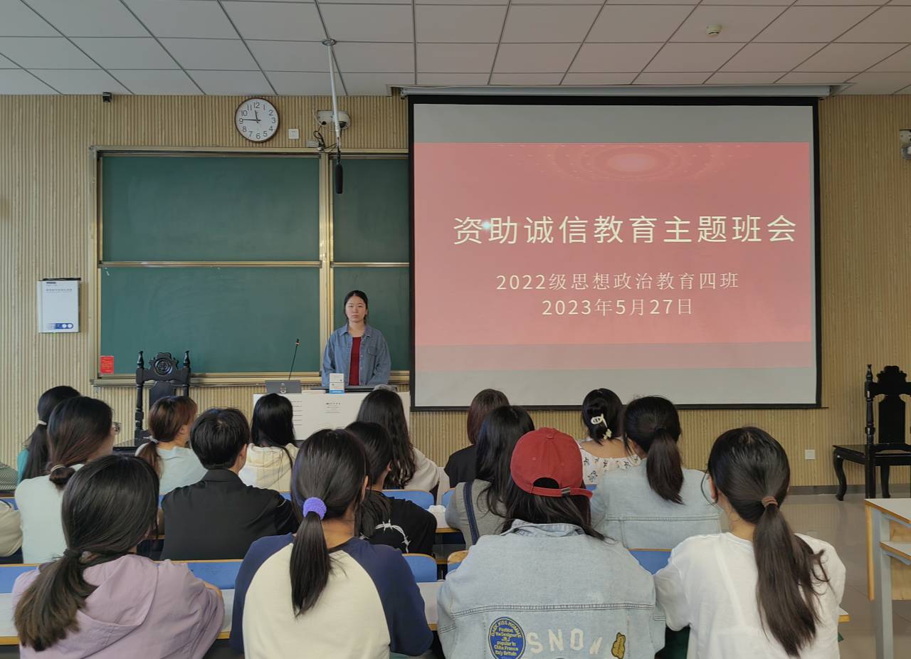 为提高学生的诚信意识和诚信素质,推动思想政治教育工作和学生资助工作持续健康发展,5月27日上午,ok138cn太阳集团5292022级思想政治教育四班在社科楼515教室召开“资助诚信教育”主题班会,我院2022级思想政治教育四班全体同学参与本次班会。班长牛志杰主持本次班会。