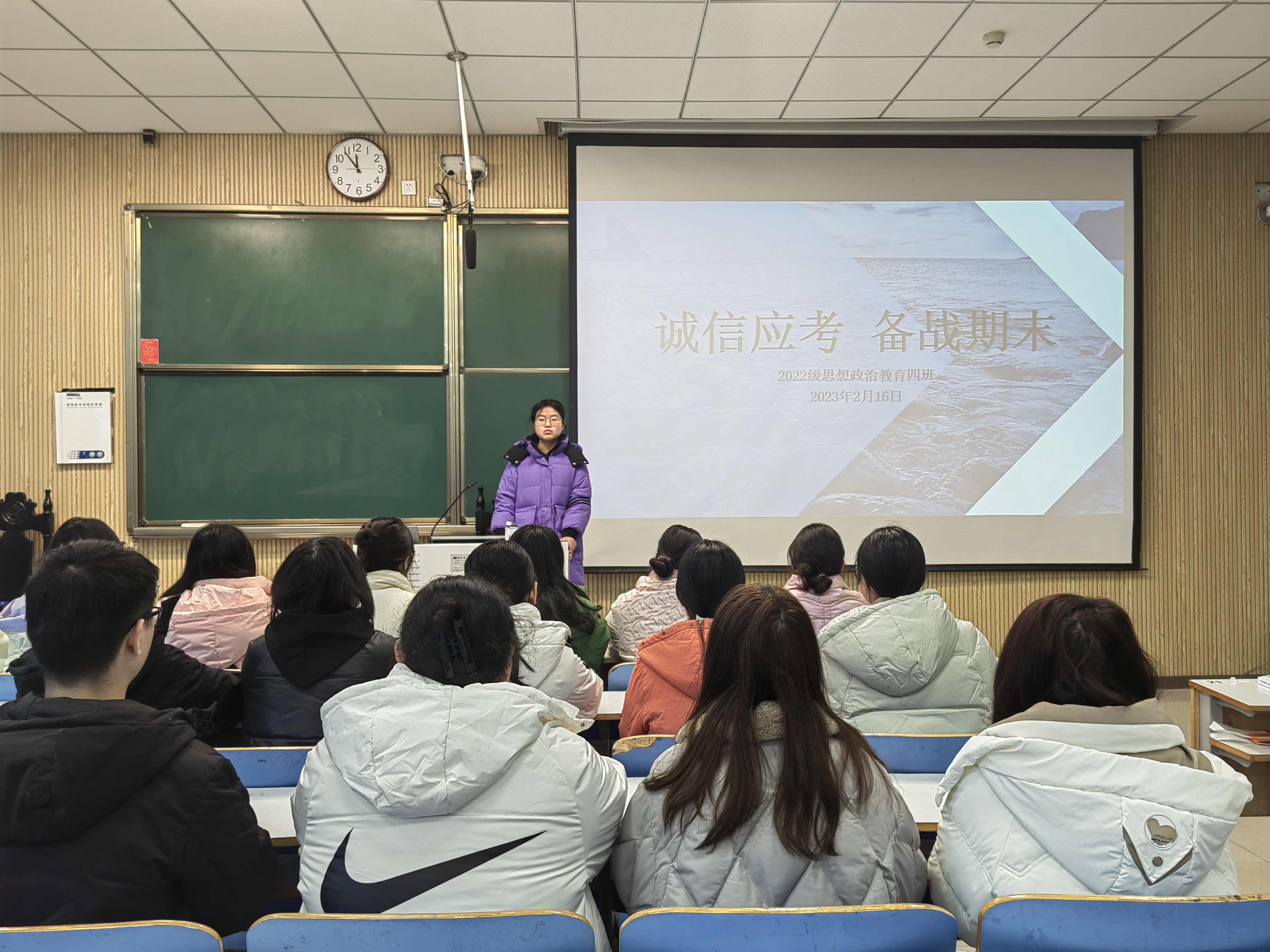 为加强学院学风建设和诚信教育,营造公平、公正的考试氛围,2月16日下午,ok138cn太阳集团5292022级思想政治教育四班在社科楼515教室召开“诚信应考,备战期末”主题班会,2022级思想政治教育四班全体同学参加本次班会。会议由学习委员熊祎主持。
