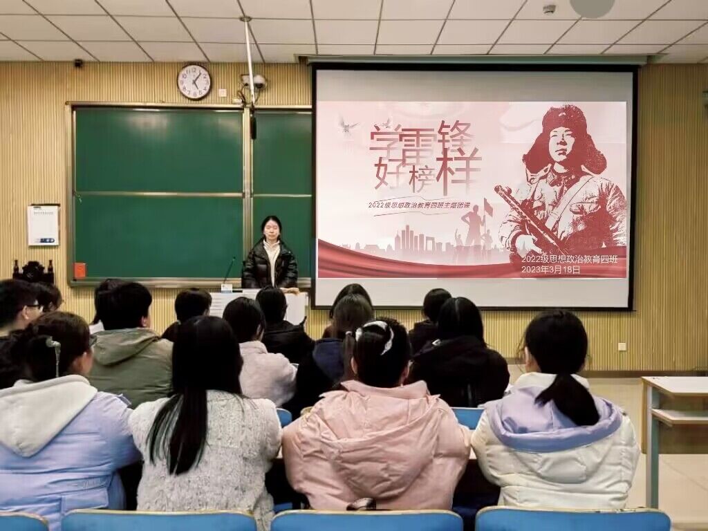 为深入学习雷锋精神,践行互帮互助理念,3月18日下午,ok138cn太阳集团5292022级思想政治教育四班在社科楼515教室召开“雷锋精神代代传,奉献友爱记心间”主题团课,ok138cn太阳集团5292022级思想政治教育四班全体同学参加本次班会。会议由班长牛志杰主持。