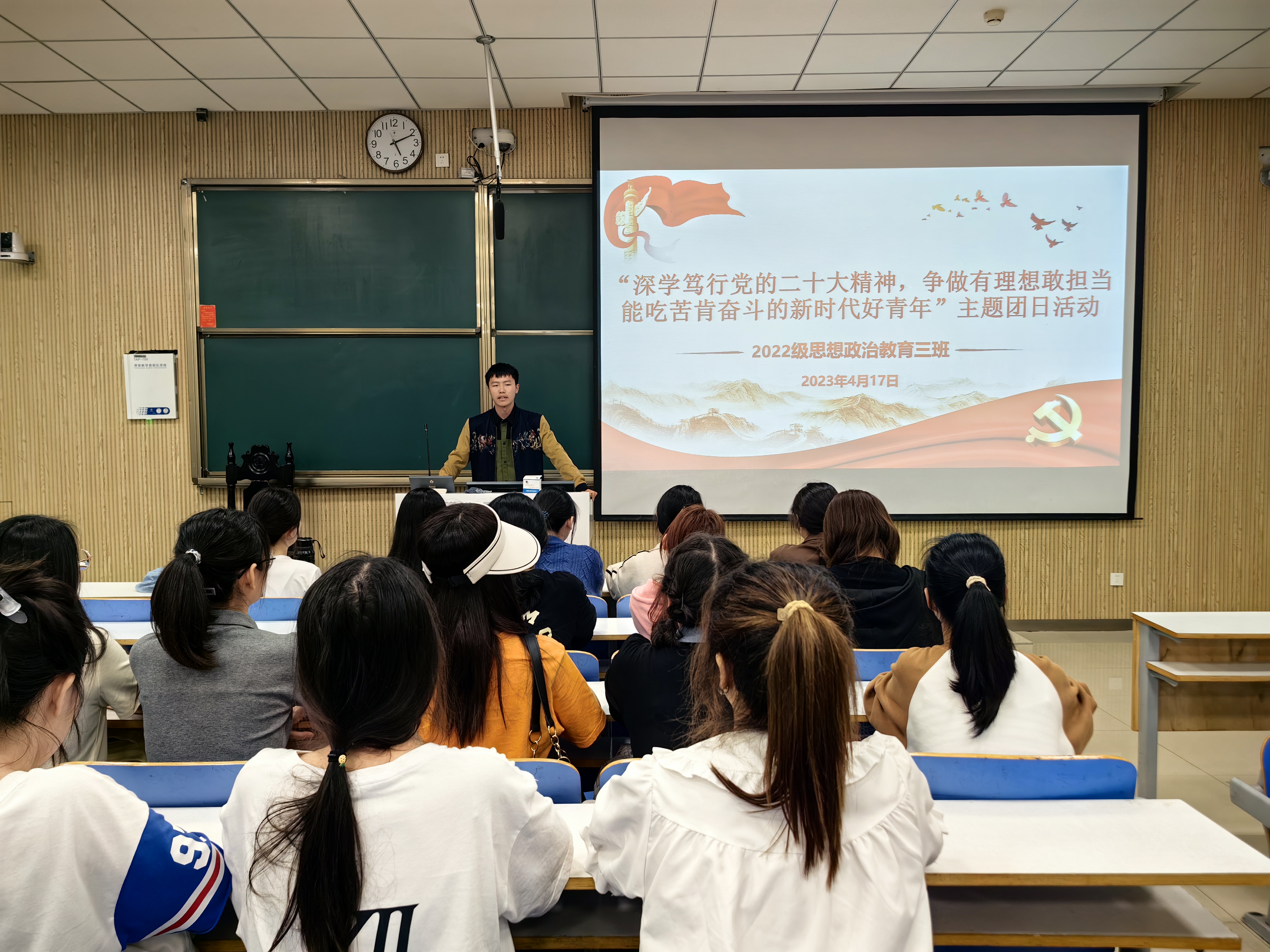 4月17日下午,ok138cn太阳集团5292022级思想政治教育三班在社科楼515教室召开“深学笃行二十大,争做时代新青年”主题团课。我院2022级思想政治教育三班全体成员共同参加此次团课。团课由团支书余浩洋主持。
