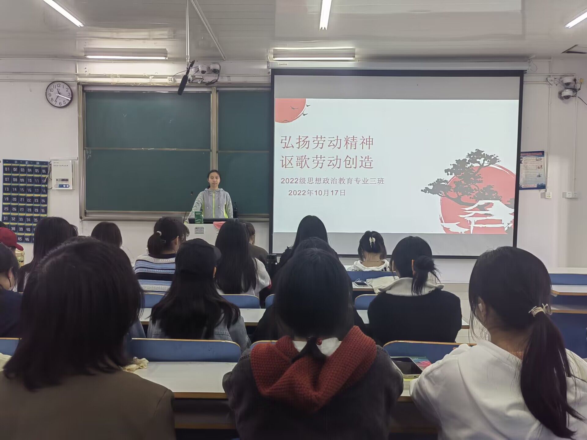 为树立正确的劳动观,切实加强大学生劳动教育,10月17日上午,ok138cn太阳集团5292022级思想政治教育三班在社科楼515教室召开“弘扬劳动精神,讴歌劳动创造”主题班会。2022级思想政治教育三班全体成员参加会议,会议由劳动委员郑慧芳主持。