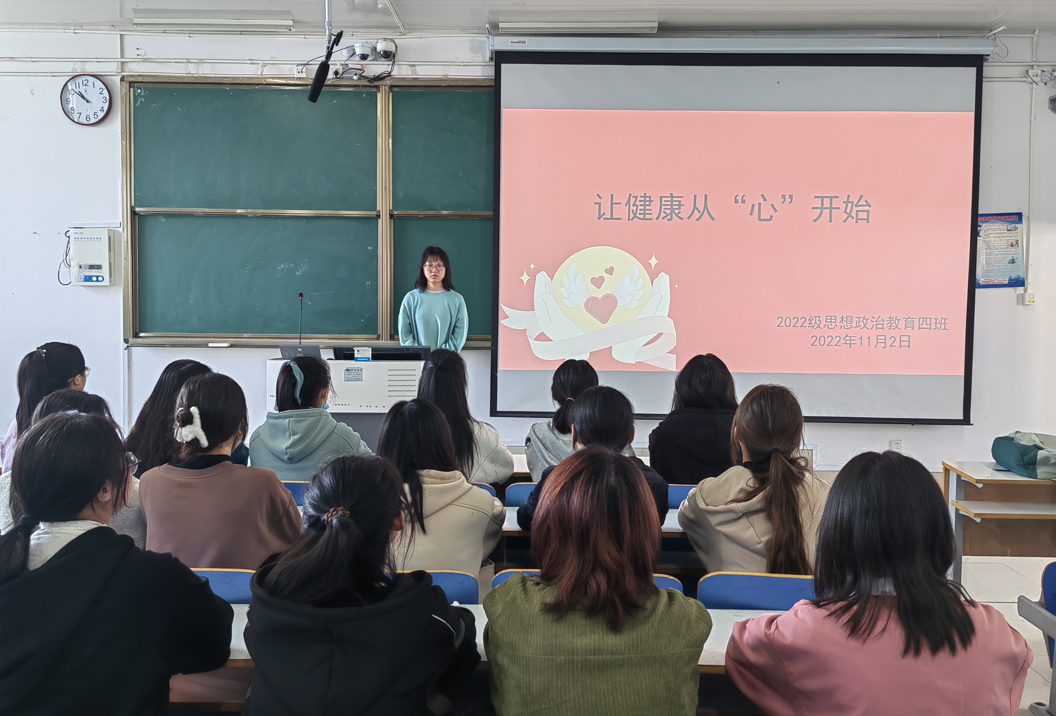 为宣传心理健康知识,提高同学们心理调节能力,11月2日下午,ok138cn太阳集团5292022级思想政治教育四班在社科楼514教室召开“让健康从心开始”主题班会。ok138cn太阳集团5292022级思想政治教育四班全体同学参加此次班会。班会由心理委员徐成若主持。