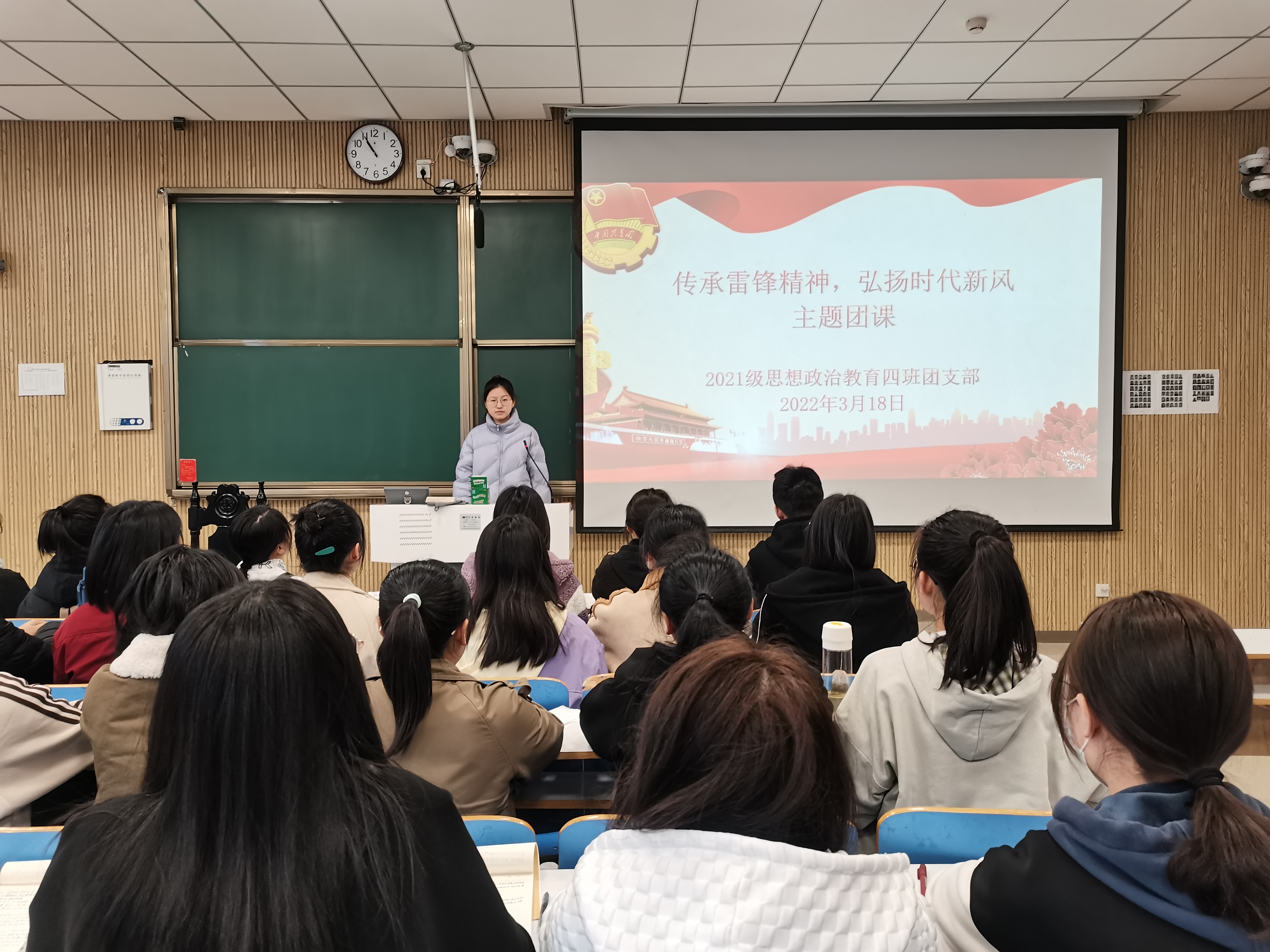 3月18日上午,ok138cn太阳集团5292021级思想政治教育四班在社科楼515教室开展“传承雷锋精神,弘扬时代新风”主题团课。2021级思想政治教育四班全体团员共同参与本次团课。团课由团支书刘珂含主持。