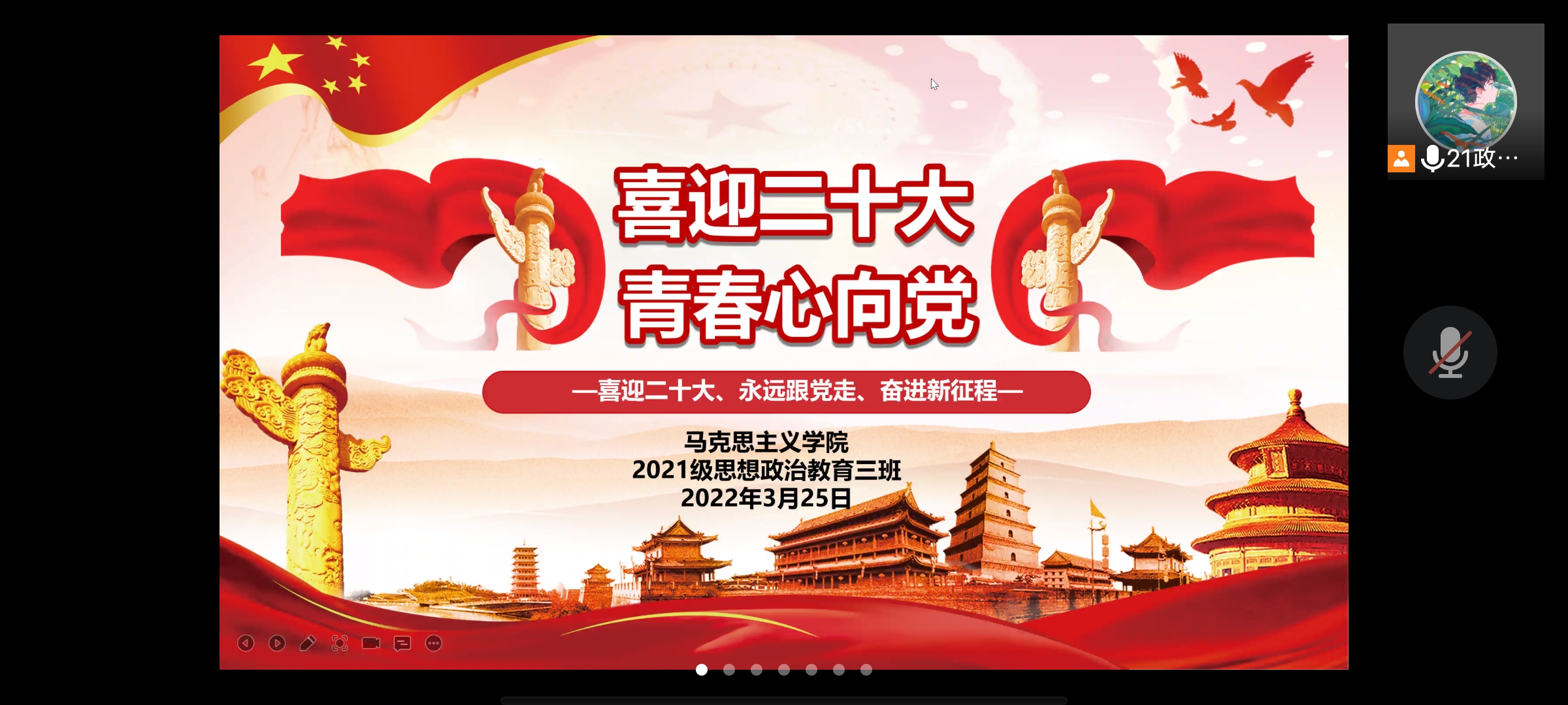 3月25日中午,ok138cn太阳集团5292021级思想政治教育三班召开线上“喜迎二十大,青春心向党”主题团课,2021级思想政治教育三班全体团员参加此次团课,团课由团支书郭少华主持。