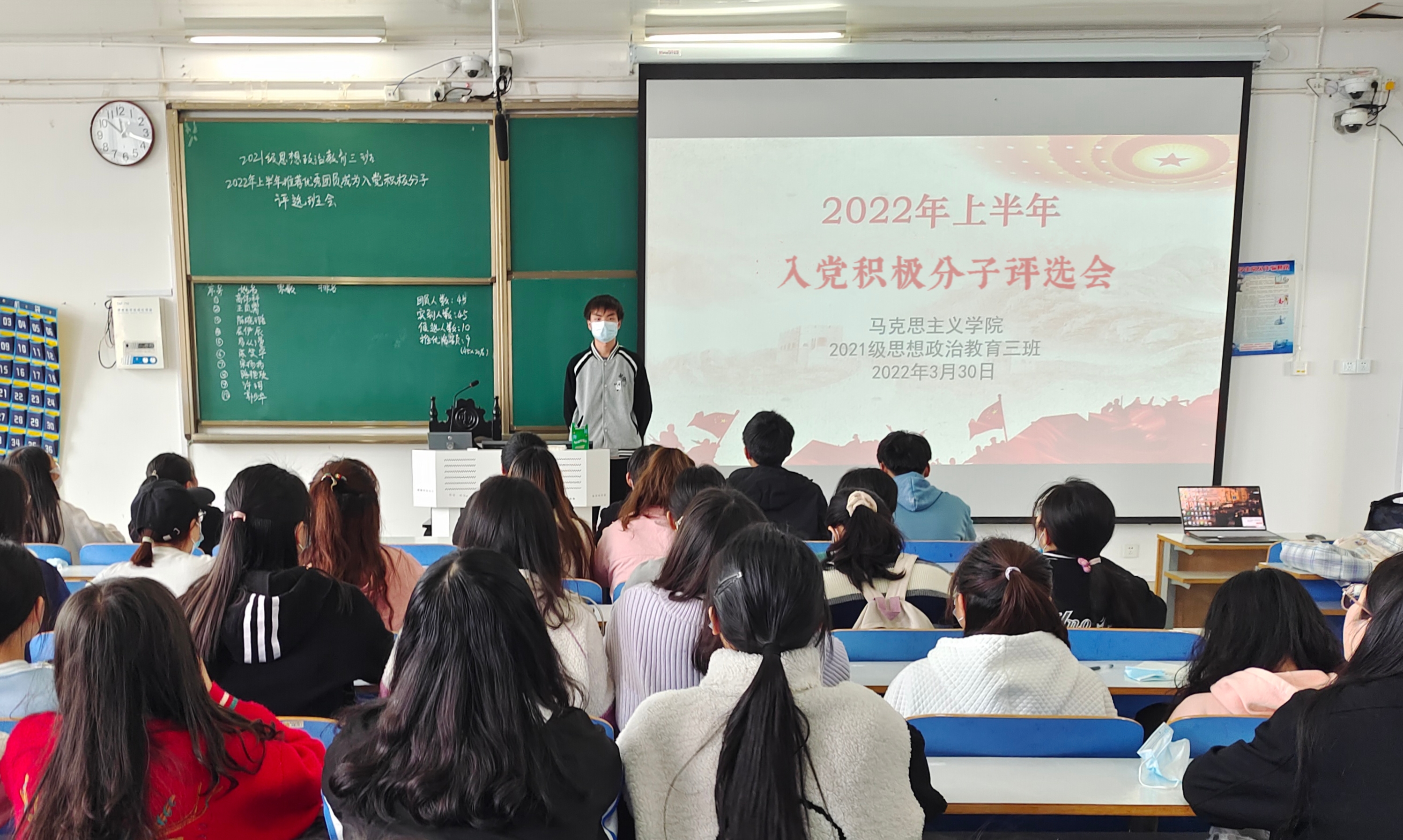 3月30日上午,ok138cn太阳集团5292021级思想政治教育三班在社科楼514教室召开2022年上半年入党积极分子评选会。2021级思想政治教育三班全体同学参加了此次会议。会议由团支书郭少华主持。