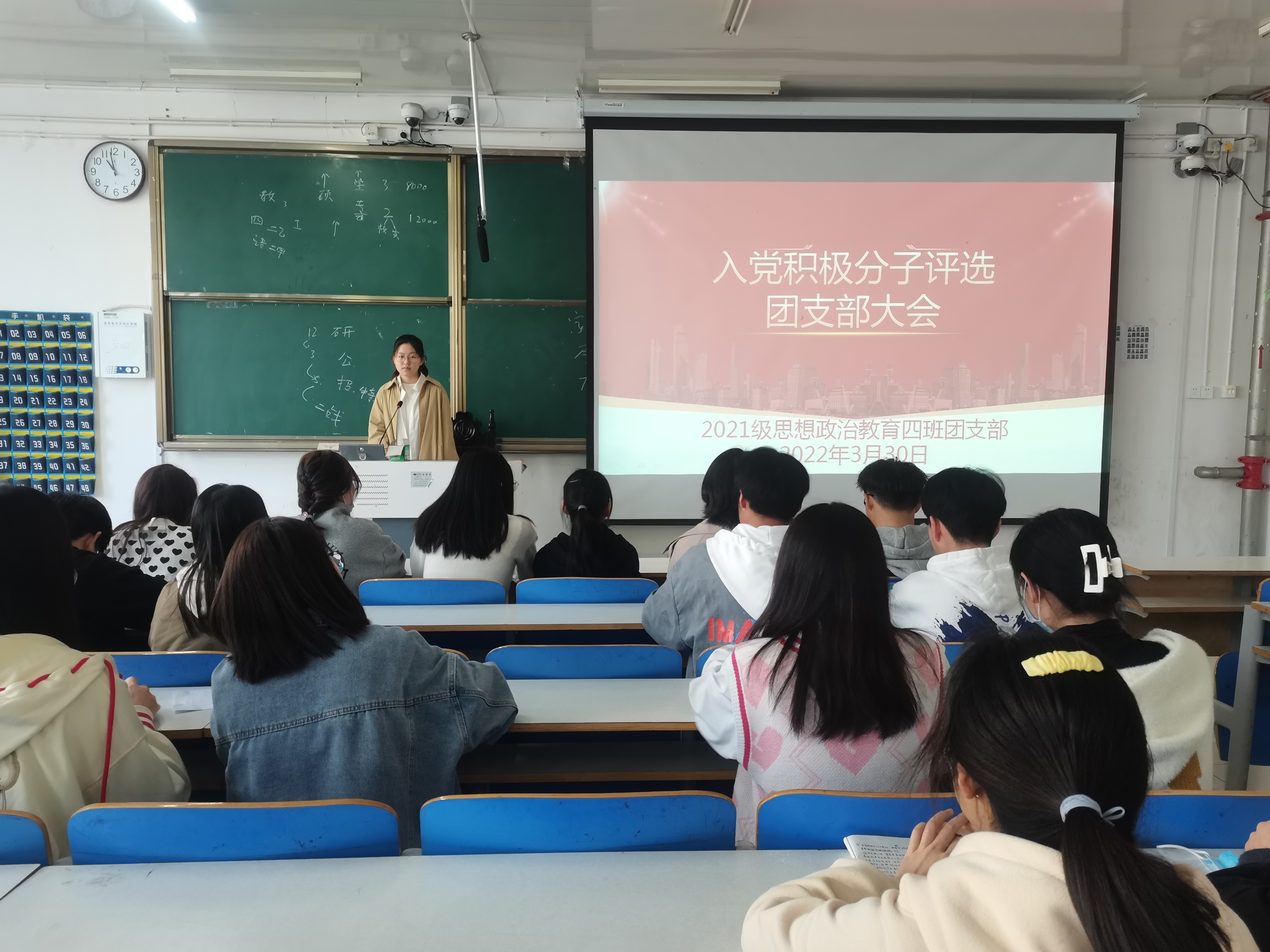3月30日上午,ok138cn太阳集团5292021级思想政治教育四班在社科楼516教室召开入党积极分子评选团支部大会。2021级思想政治教育四班全体团员参加本次会议。会议由团支书刘珂含主持。
