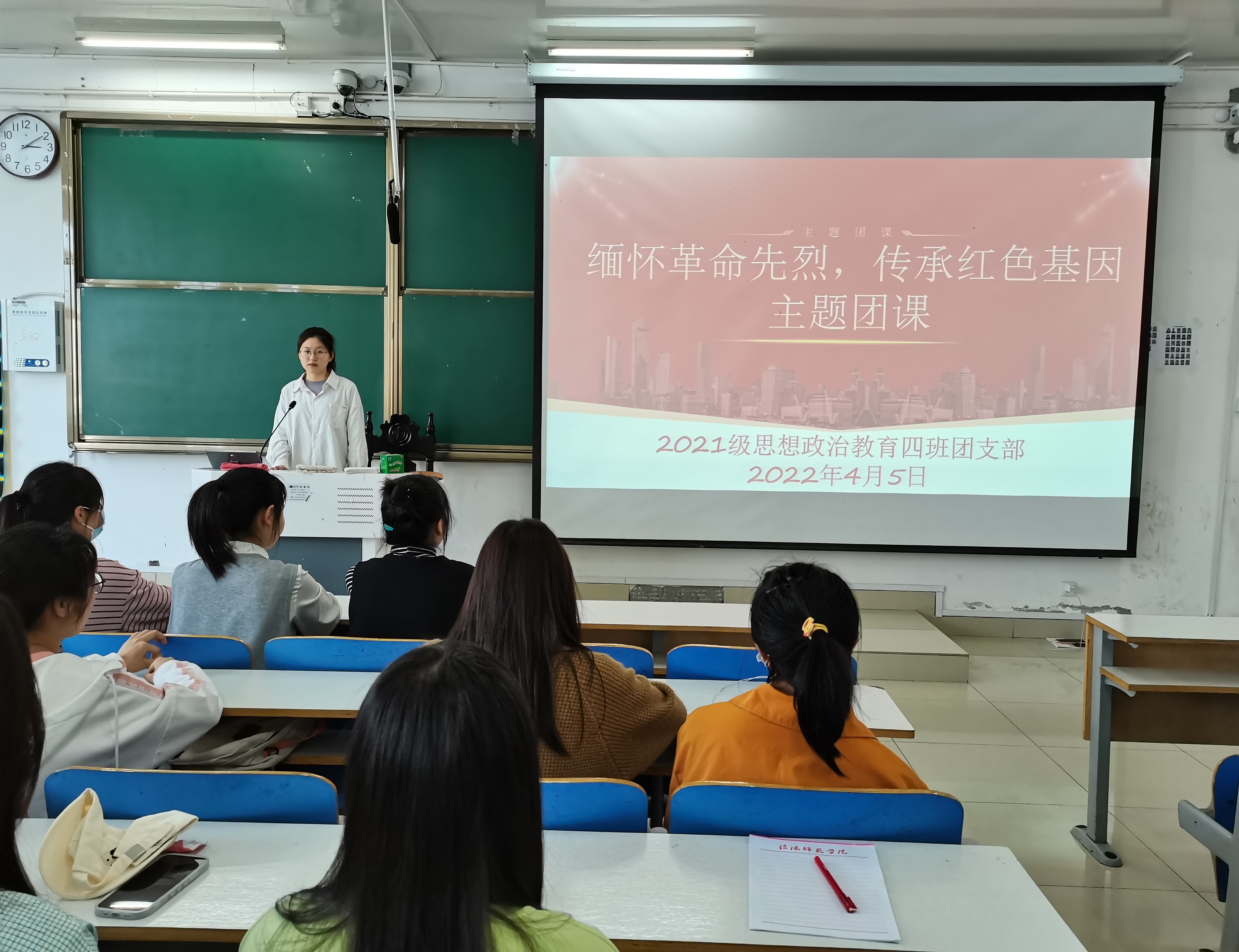 为表达对革命先烈们的崇敬和尊重,传承中华民族精神,4月5日下午,ok138cn太阳集团5292021级思想政治教育四班在社科楼516教室开展“缅怀革命先烈,传承红色基因”主题团课。2021级思想政治教育四班全体团员参加本次团课。团课由团支书刘珂含主持。