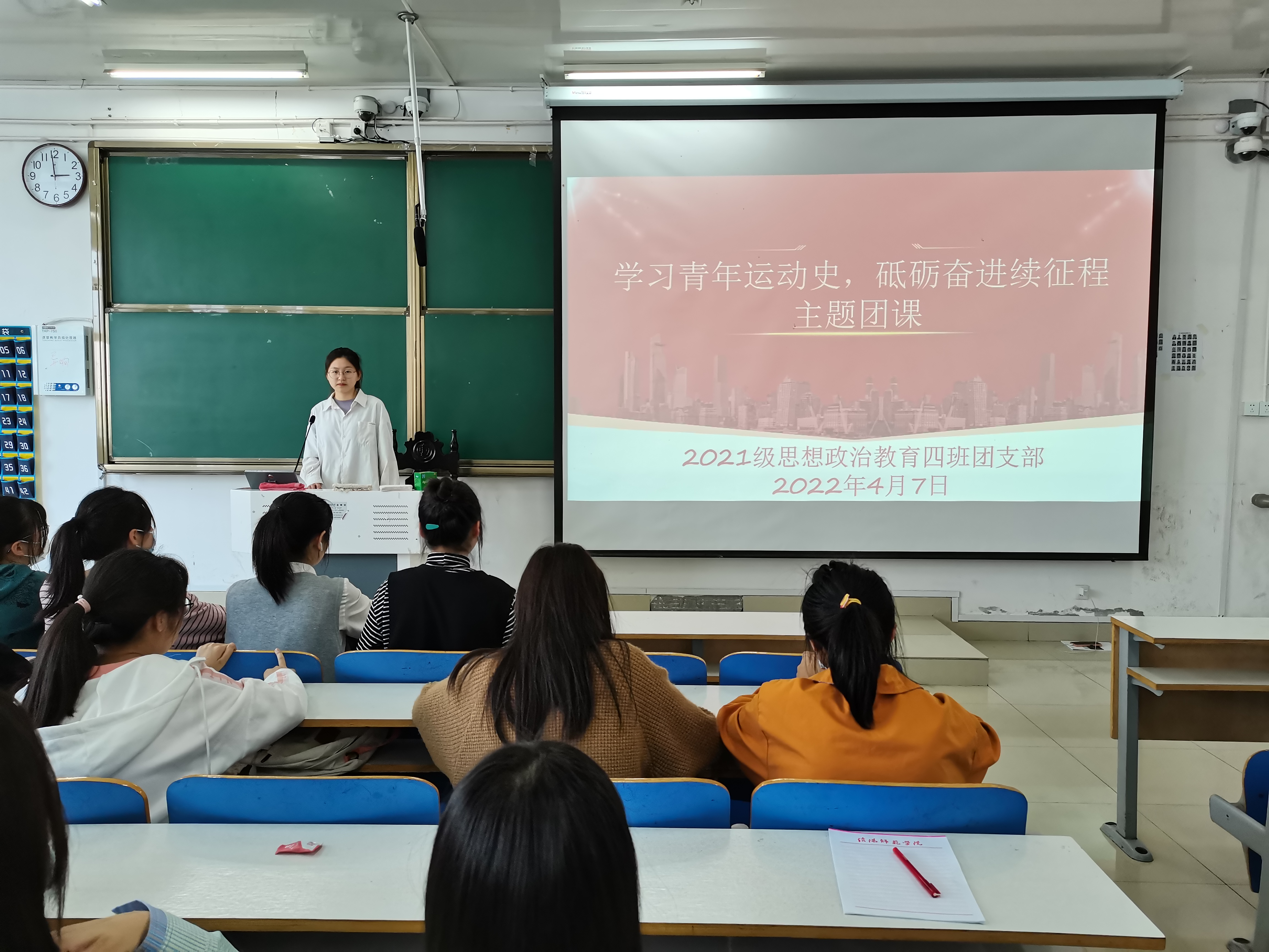 4月7日下午,ok138cn太阳集团5292021级思想政治教育四班在社科楼516教室开展“学习青年运动史,砥砺奋进绪征程”主题团课。2021级思想政治教育四班全体团员共同参与本次团课,团课由团支书刘珂含主持。