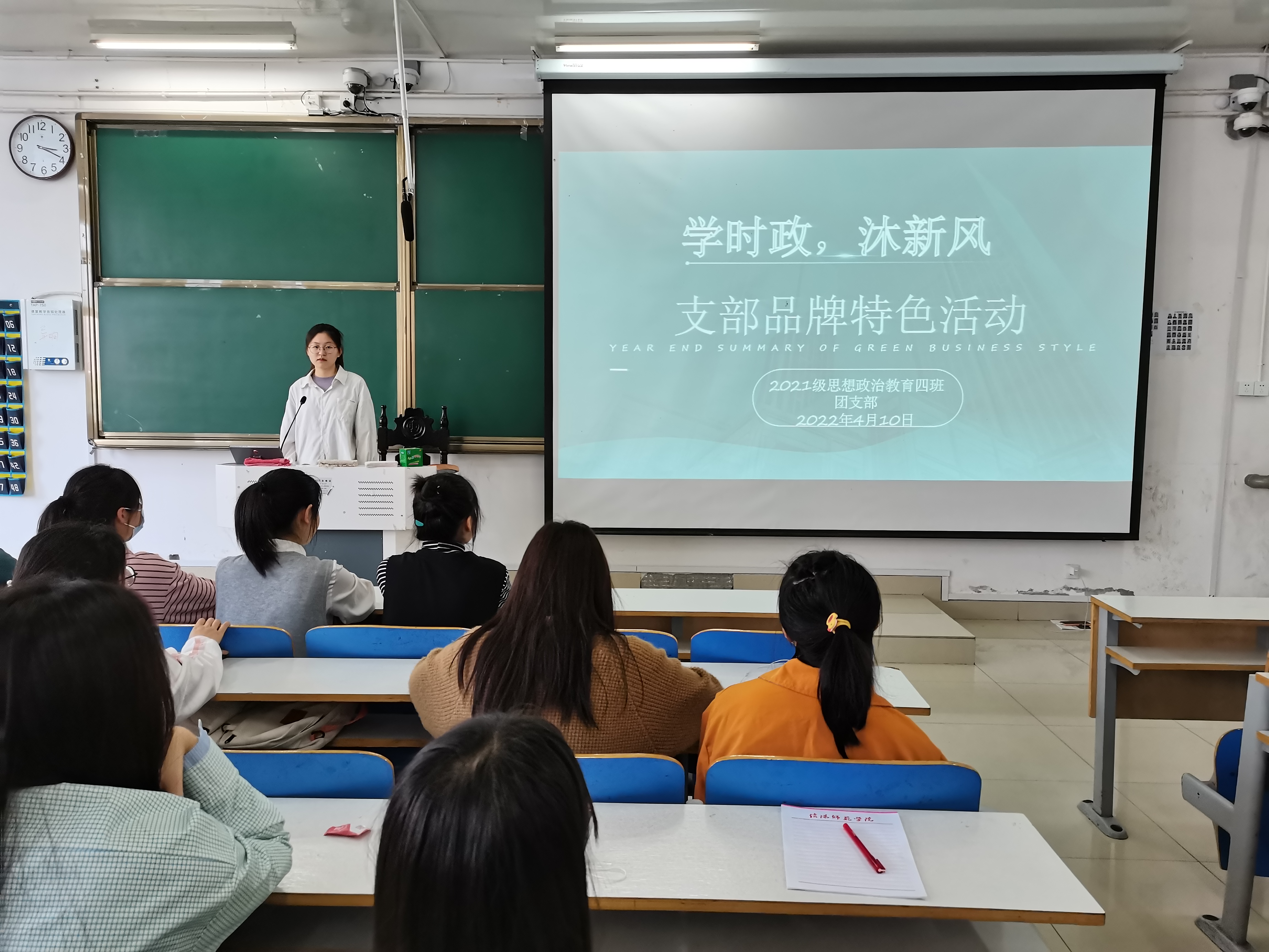 4月10日上午,ok138cn太阳集团5292021级思想政治教育四班团支部在社科楼516教室开展“学时政,沐新风”品牌特色活动。2021级思想政治教育四班全体团员共同参与本次活动,活动由团支书刘珂含主持。