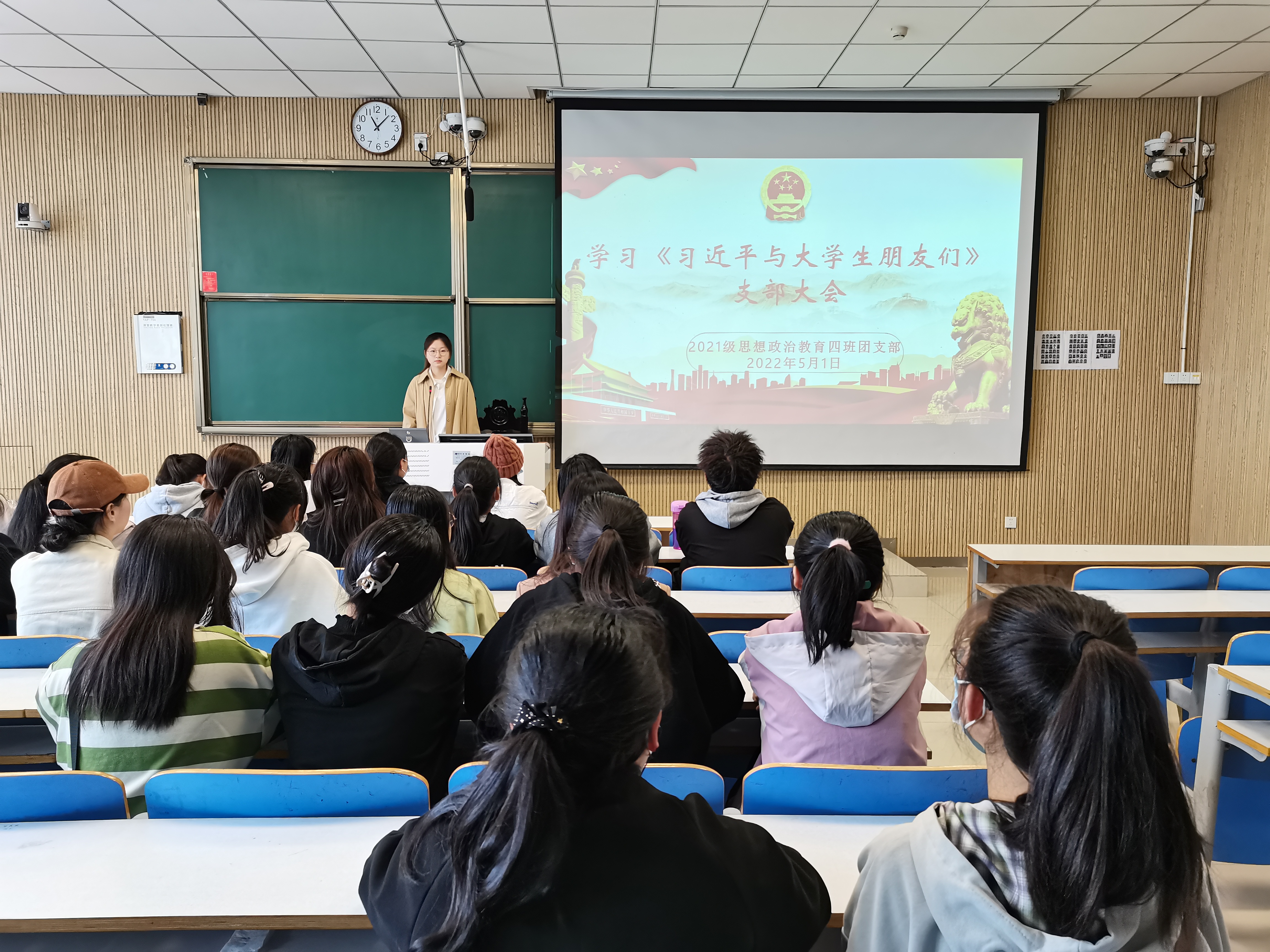 为追寻领袖足迹,聆听时代声音,5月1日上午,ok138cn太阳集团5292021级思想政治教育四班在社科楼515教室开展学习《习近平与大学生朋友们》支部大会。2021级思想政治教育四班全体团员共同参加本次会议。会议由团支书刘珂含主持。