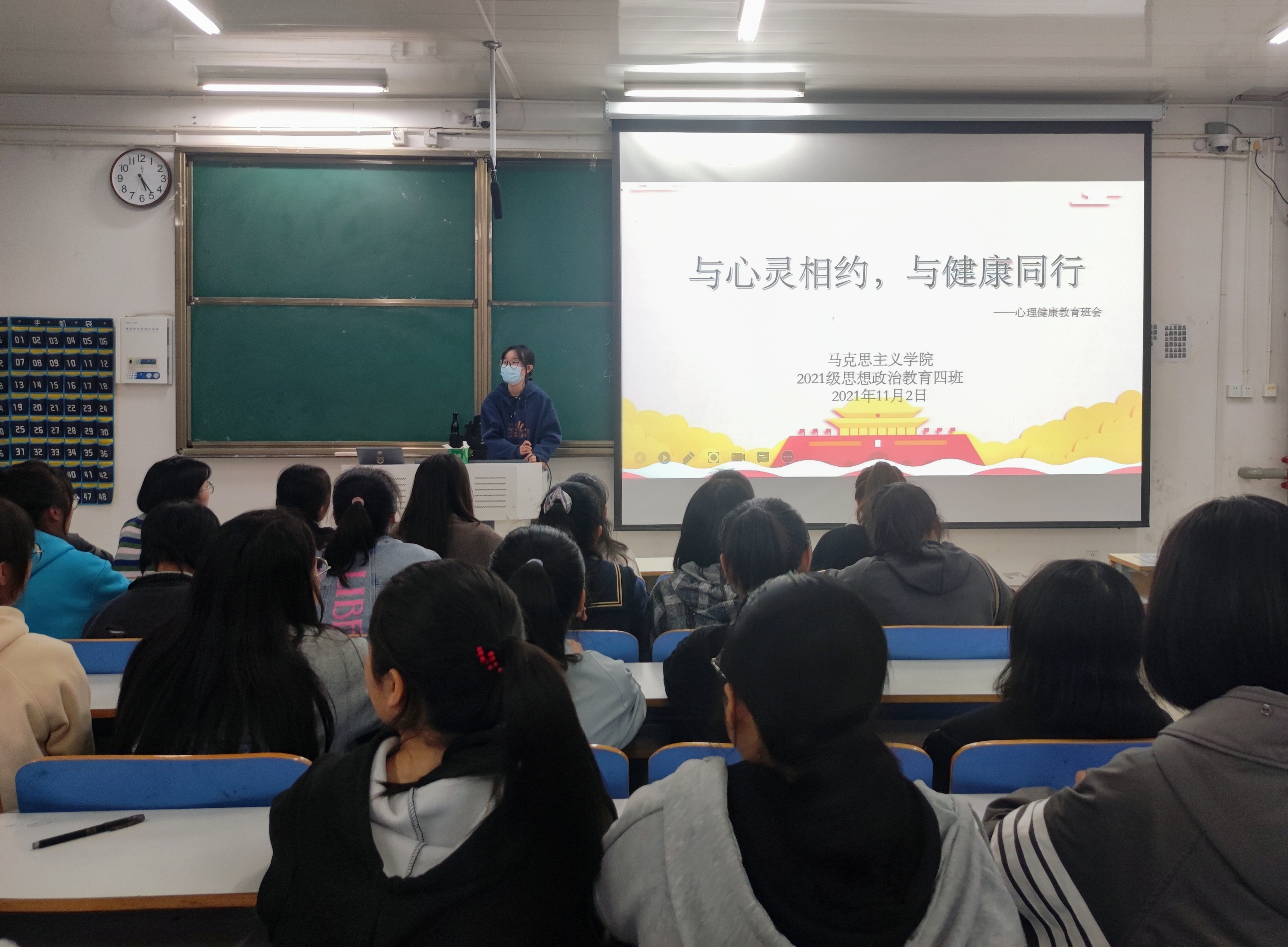 为了普及心理知识,营造班级良好氛围。11月2日上午,ok138cn太阳集团5292021级思想政治教育四班“与心灵相约,与健康同行”主题班会在社科楼516教室顺利开展。2021级思想政治教育四班全体同学参加了本次班会。班会由心理委员杨可主持。