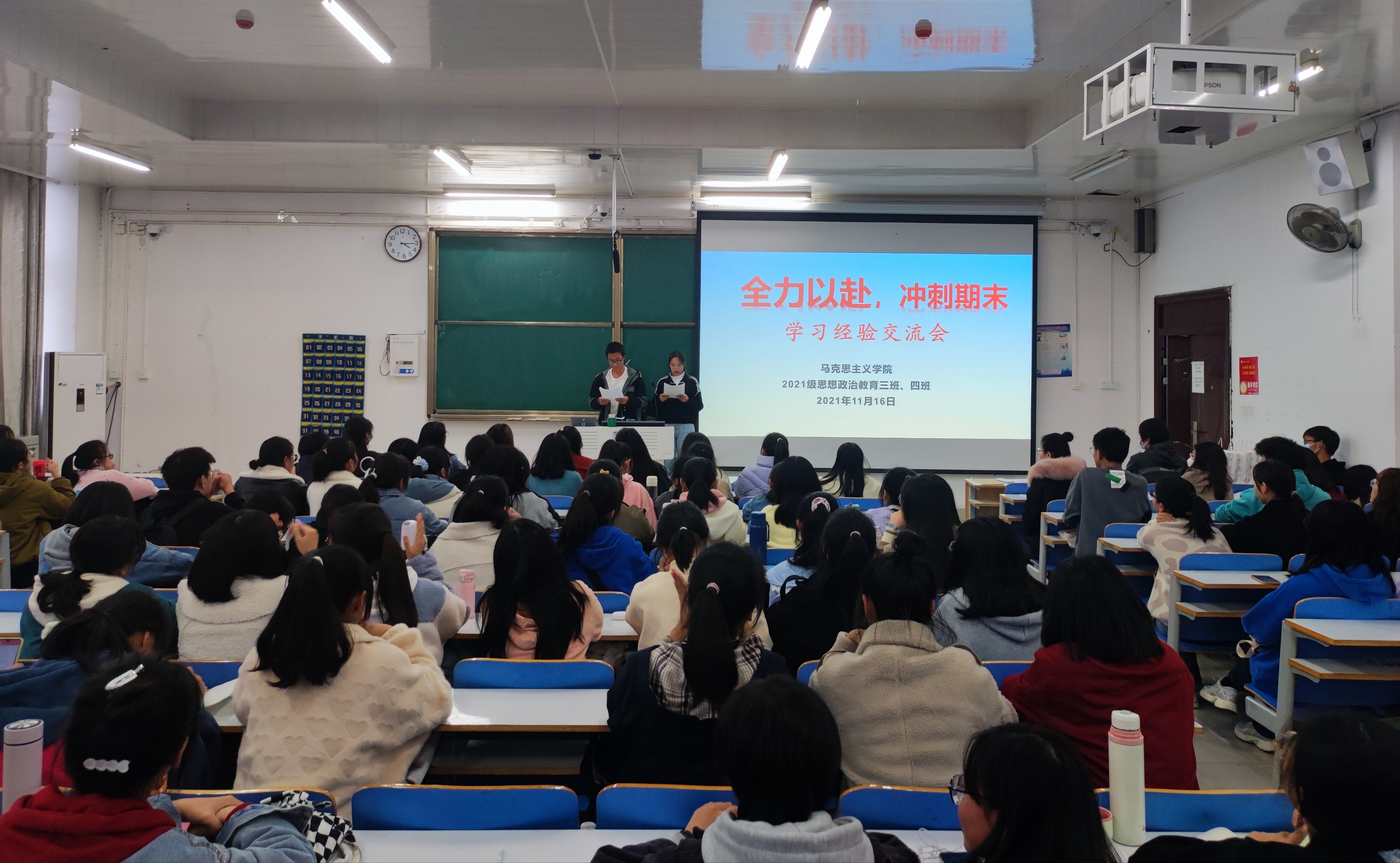 为进一步激发同学们的学习积极性,改进学习方法,帮助同学们更好的明确学习目标,11月16日下午,ok138cn太阳集团5292021级思想政治教育三班、四班在社科楼515教室开展学习经验交流会。班主任高小佳、2020级优秀学生代表以及2021级思想政治教育三班、四班全体同学参加了本次班会。班会由学习委员于坤鹏、史恪萍主持。