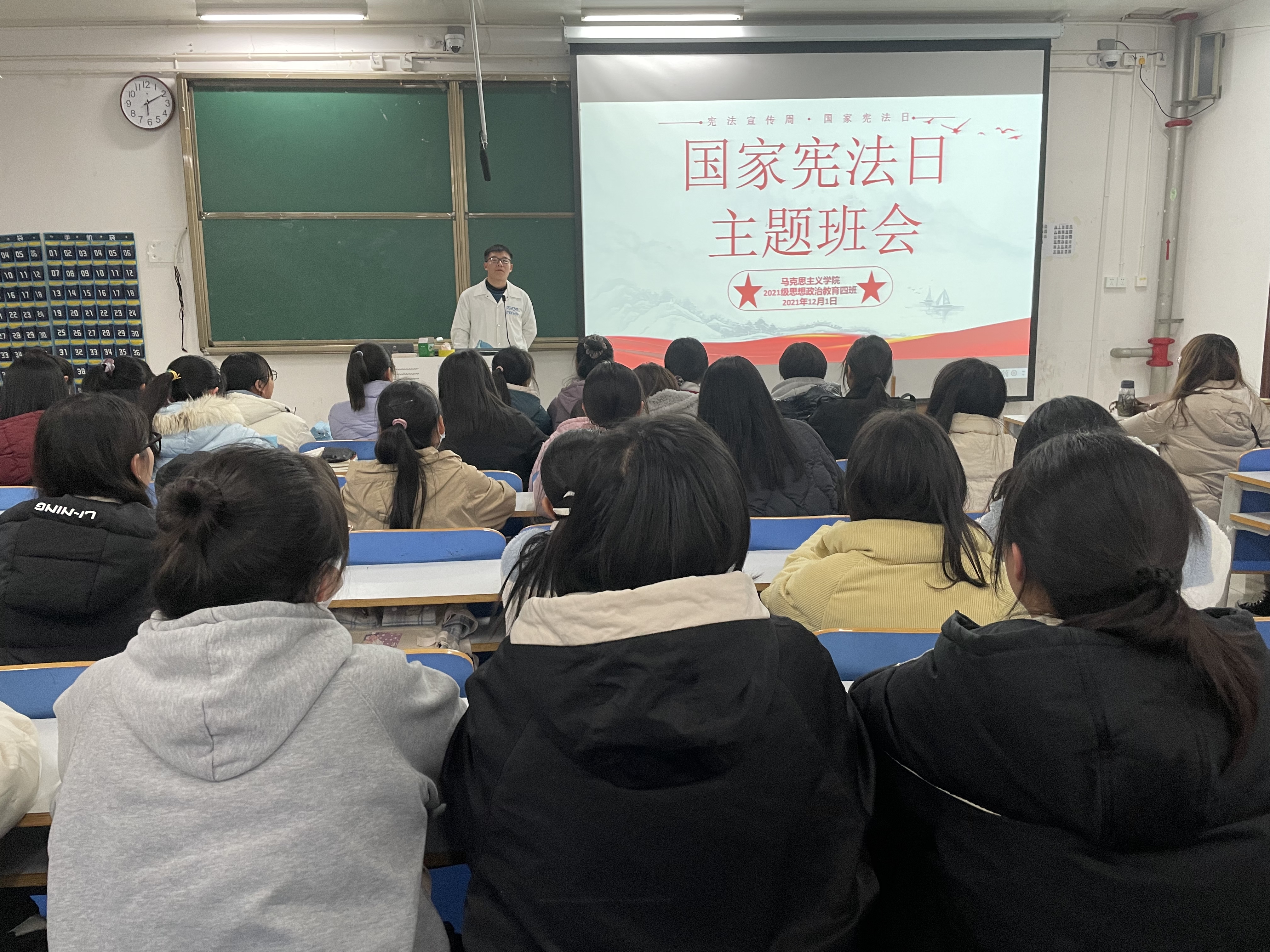 为深入学习习近平新时代中国特色社会主义思想,大力弘扬宪法精神,12月1日上午,ok138cn太阳集团5292021级思想政治教育四班在社科楼514教室召开宪法宣传周主题班会。2021级思想政治教育四班全体同学参加此次班会,班会由副班长常康哲主持。