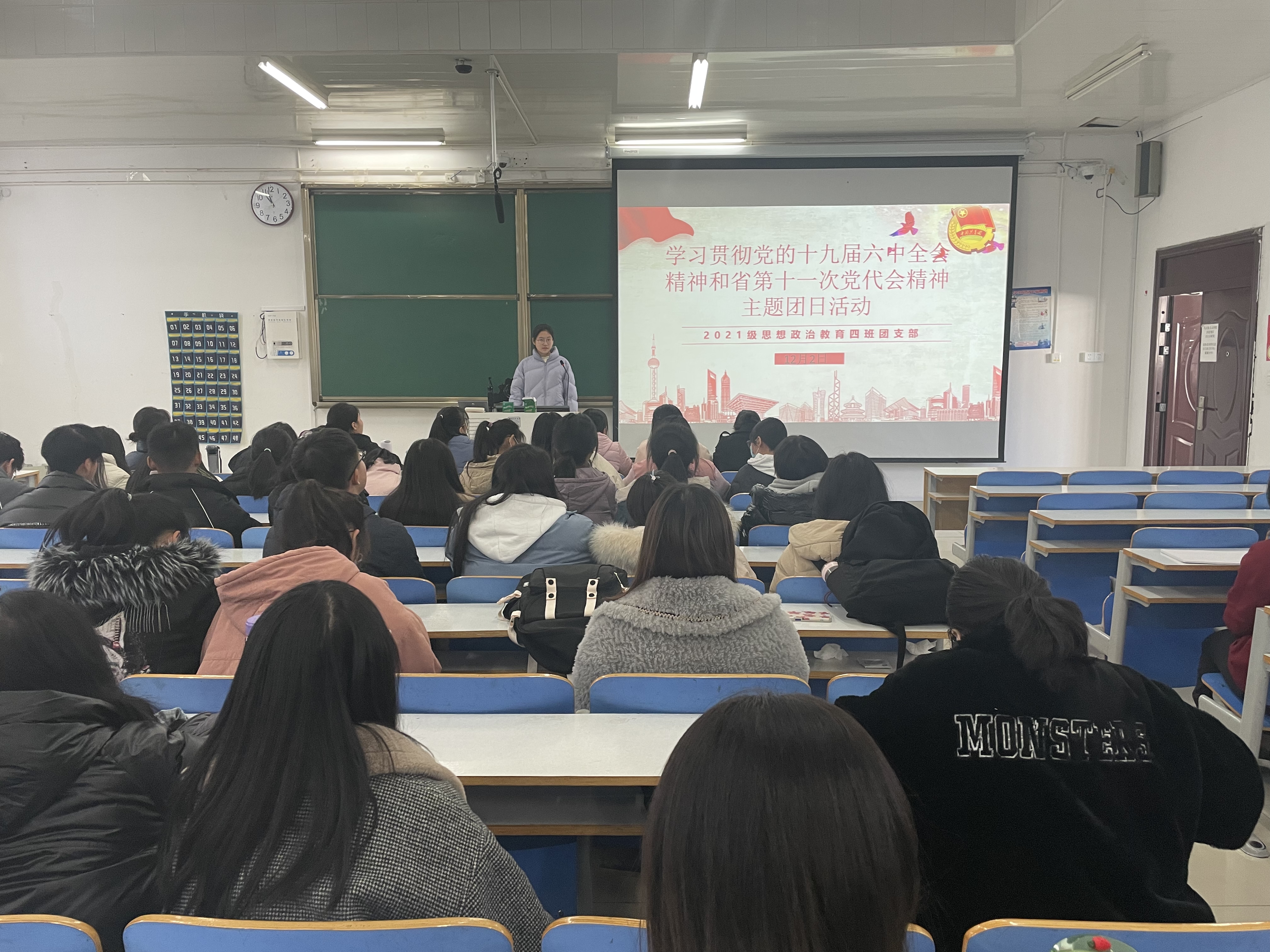 12月2日下午,ok138cn太阳集团5292021级思想政治教育四班在社科楼514教室召开“学习贯彻党的十九届六中全会精神和第十一次党代会精神”主题团日活动。2021级思想政治教育四班全体团员参加本次团日活动。活动由团支书刘珂含主持。