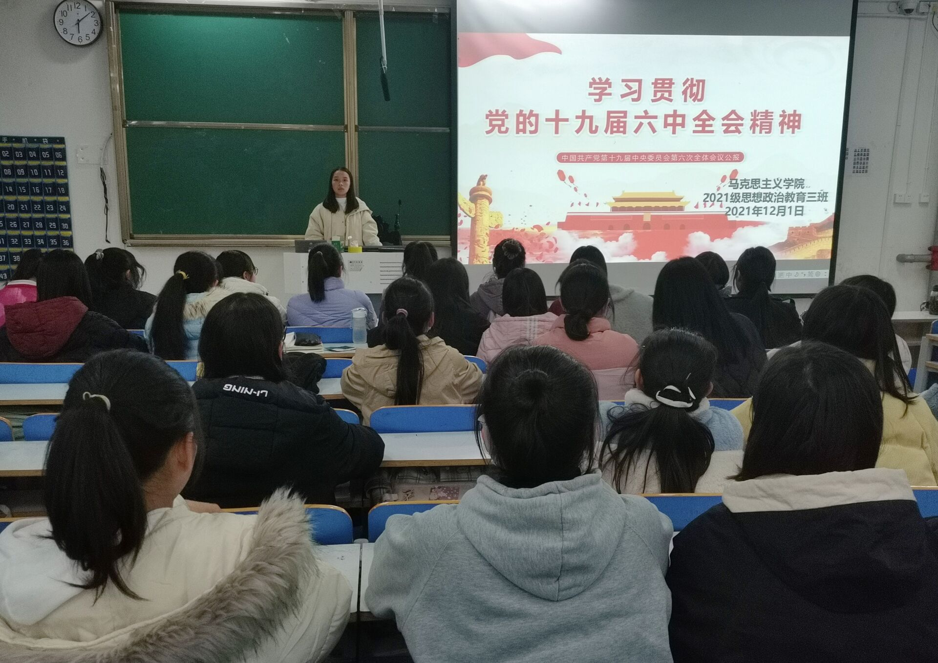 12月1日下午,ok138cn太阳集团5292021级思想政治教育三班在社科楼516召开学习党的十九届六中全会精神主题班会。2021级思想政治教育三班全体成员参加本次班会。班会由副班长王岚霄主持。