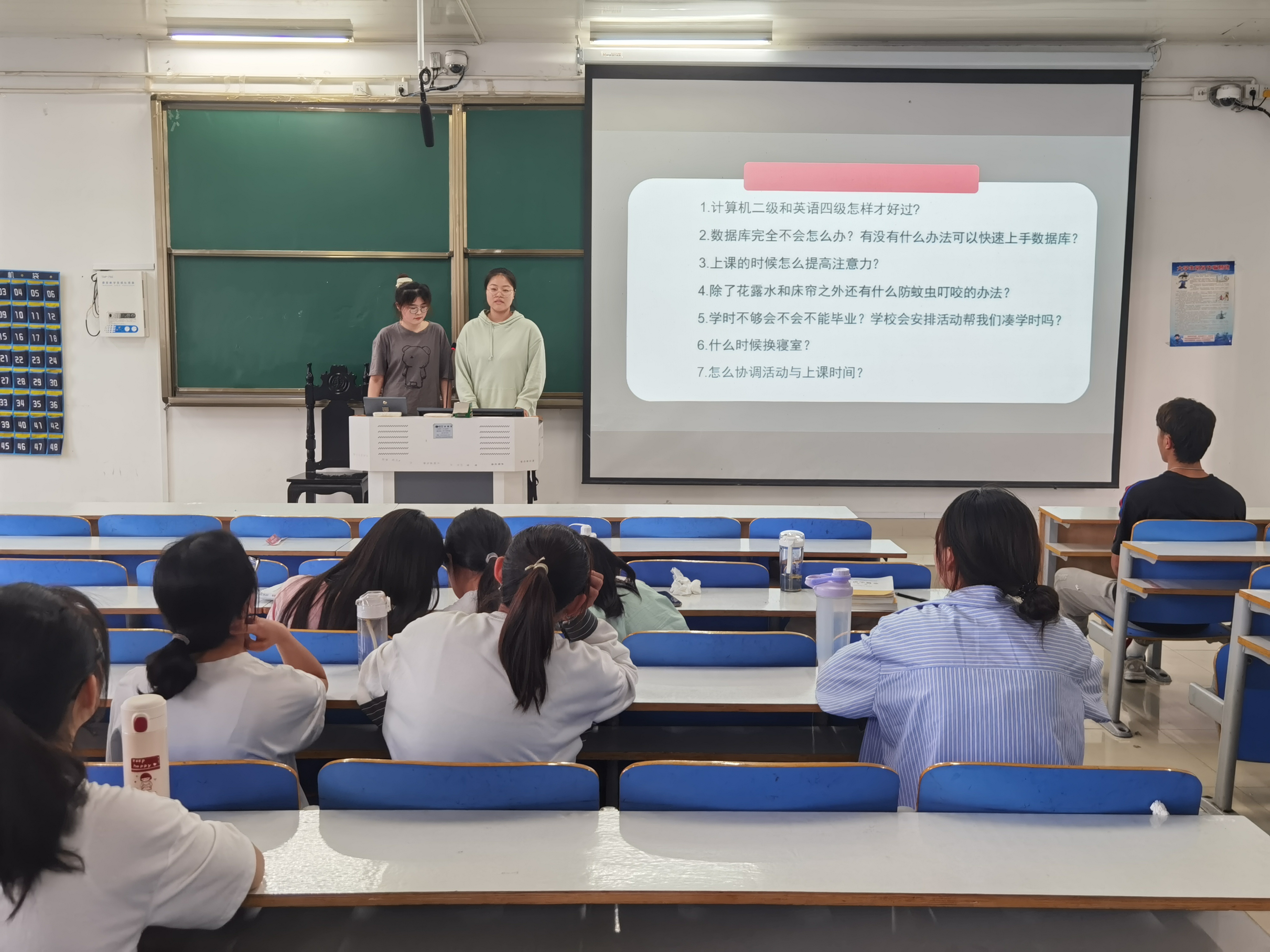 首先,陈宇航利用幻灯片向大家展示同学们提出的各类问题。随后,预备党员王文慧、李静结合自身学习与生活经验,悉心为大家解惑。其中,针对如何学好数据库、通过计算机二级和英语四级考试这类问题,李静表示,同学们要注意平时积累,做到理论知识与实际操作相结合,提前复习为考试做好准备。对于共青团员如何向党组织靠拢的问题,王文慧对我班学生提出四点建议:一要积极主动地向党组织汇报个人思想状况;二要积极参加党组织的各种有关活动,认真对待党组织的培养教育;三要自觉接受并正确对待党组织的考察;四要加强理论学习,树立坚定的共产主义理想信念。接着,王文慧根据同学们的需求为大家推荐《共产党宣言》、《关于费尔巴哈的提纲》和《资本论》等几本专业性较强的书籍,并为同学们提供相关的解读资料帮助学生阅读。最后,陈宇航对本次活动进行总结并对王文慧、李静的耐心解答表示感谢。