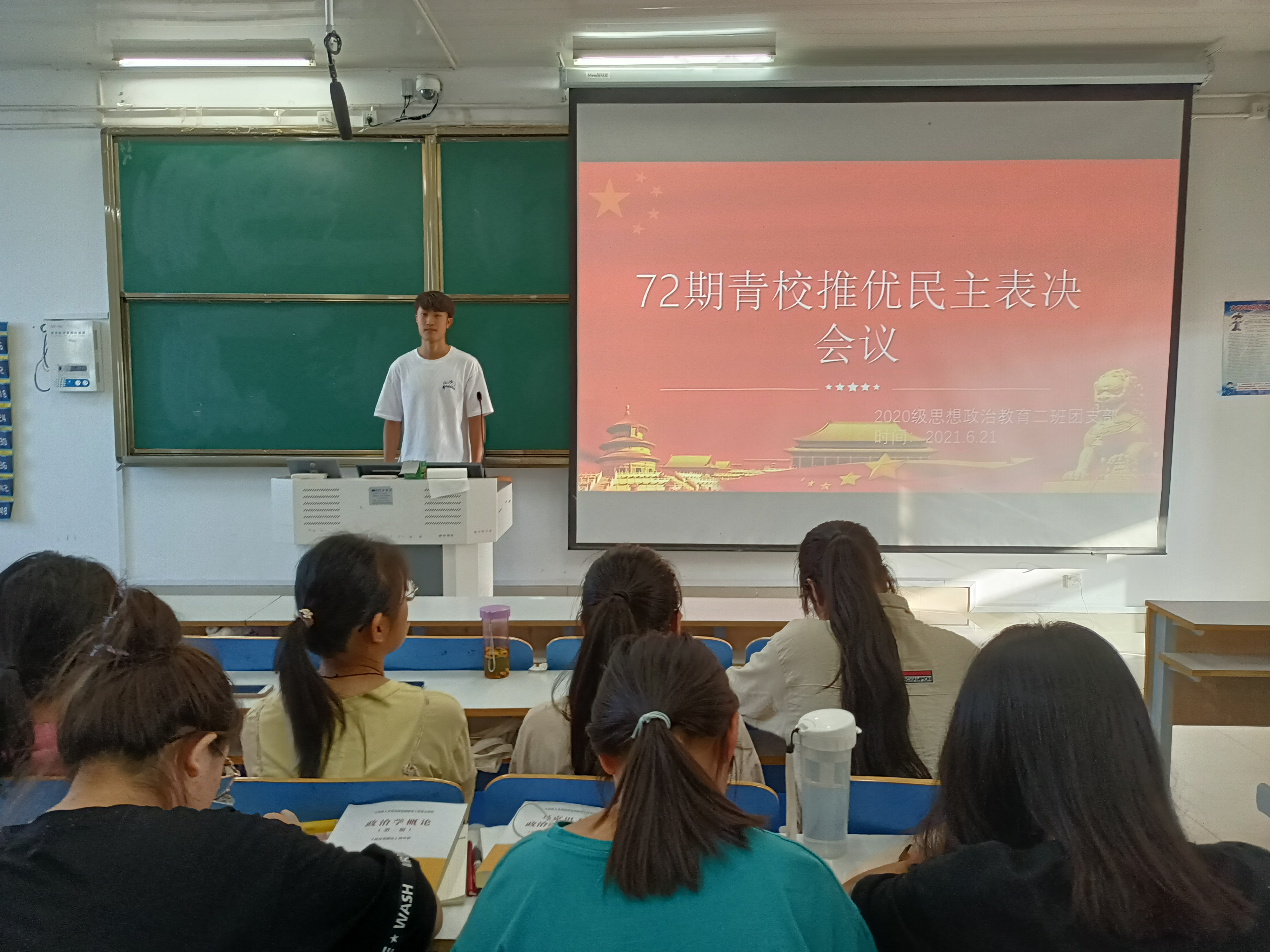6月21日下午,ok138cn太阳集团5292020级思想政治教育二班在社科楼514教室顺利召开第72期青校学员推优民主表决团支部大会。2020级思想政治教育二班全体团员共同参与本次会议。