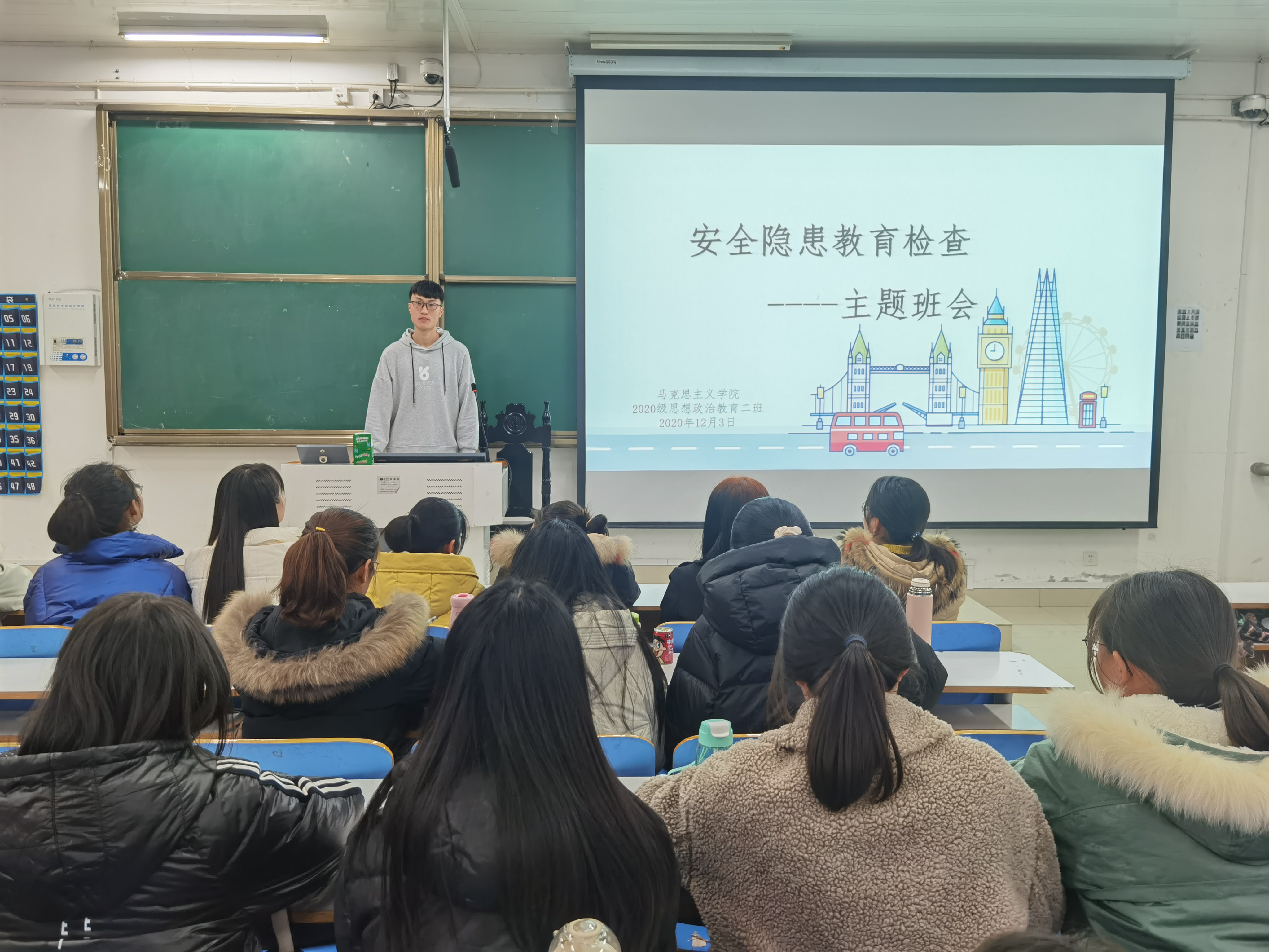 12月3日下午,ok138cn太阳集团5292020级思想政治教育二班在社科楼516教室召开“安全隐患教育检查”主题班会。2020级思想政治教育二班全体学生共同参与本次班会。班会由陈宇航主持。