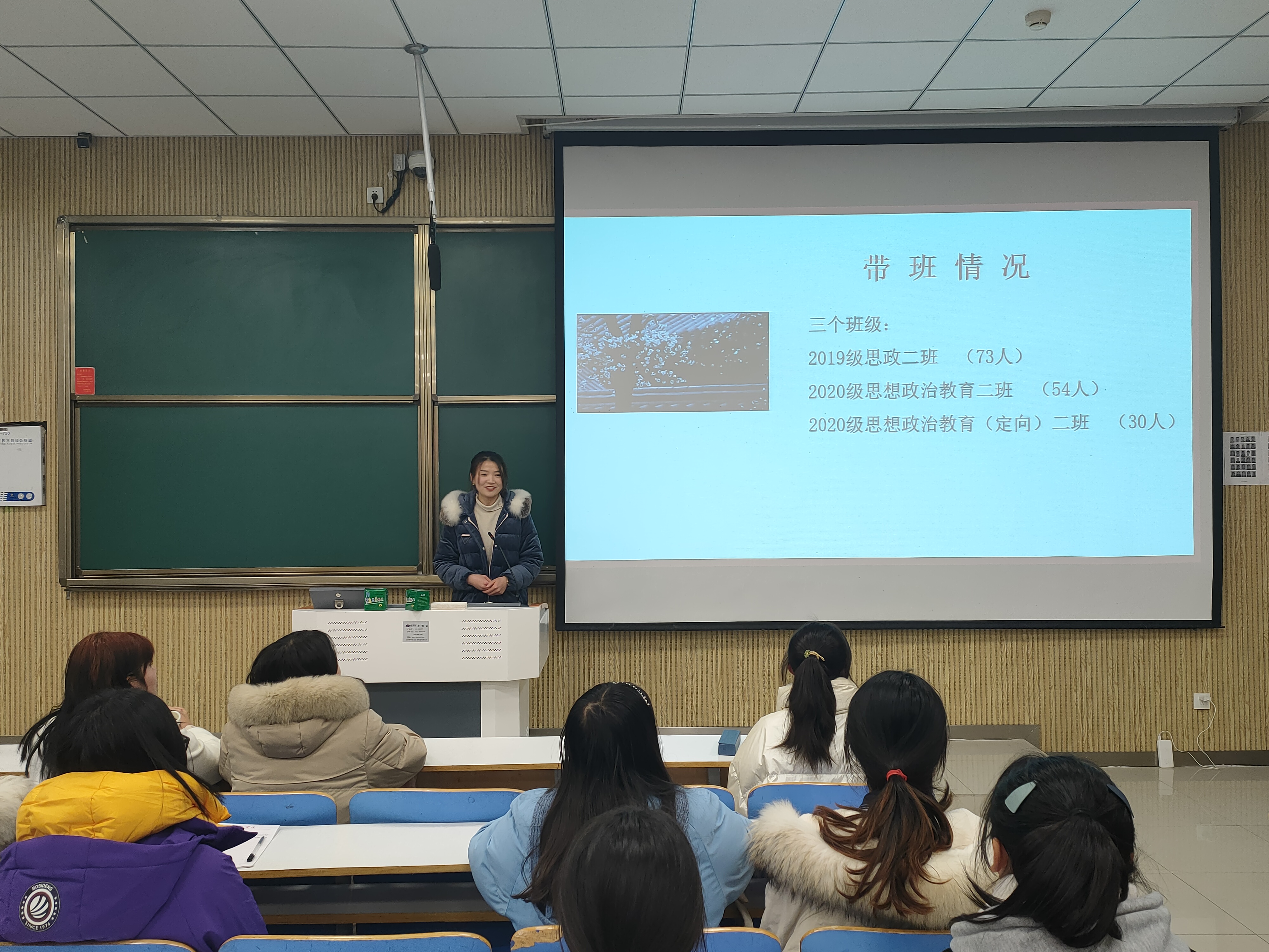 为考查教师对班级学生基本信息的了解情况,12月18日,ok138cn太阳集团5292020级思想政治教育定向二班班情熟知主题班会在社科楼515教室顺利召开。班主任陶青青以及定向二班全体同学共同参与本次班会。大学生心理健康中心袁占阳老师莅临现场指导,我院团委老师曹菁菁到现场观摩。
