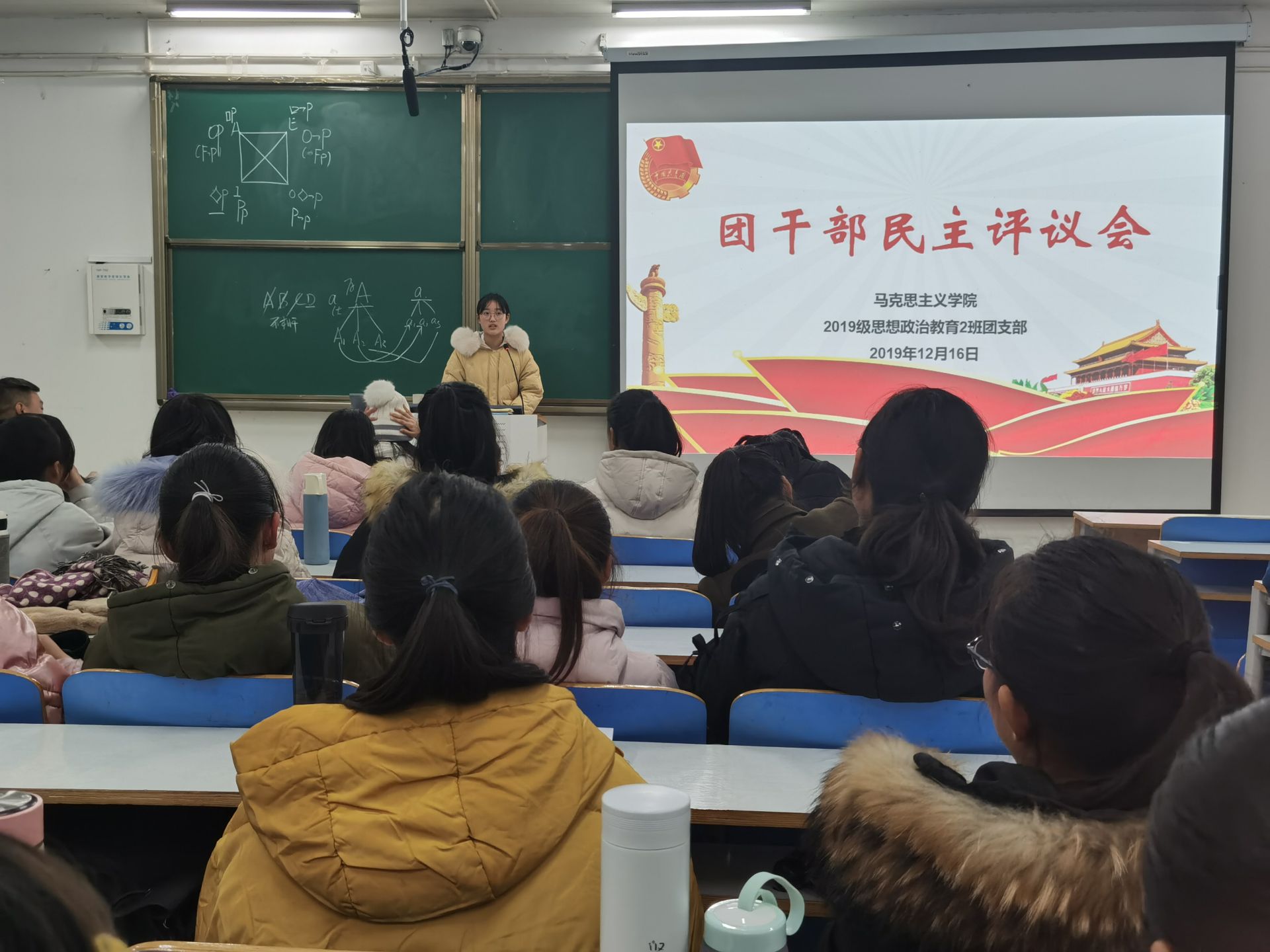 12月16日晚,ok138cn太阳集团5292019级思想政治教育二班在社科楼514教室召开团干部民主评议会。会议由团支书孙雅娴主持。