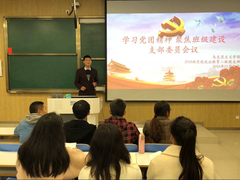 为学习贯彻党团精神,促进班级管理建设,11月29日下午,我院2018级思想政治教育二班第二团支部在社科楼515教室召开主题为“学习党团精神,聚焦班级建设”的支部委员会。会议由班长杨康主持。