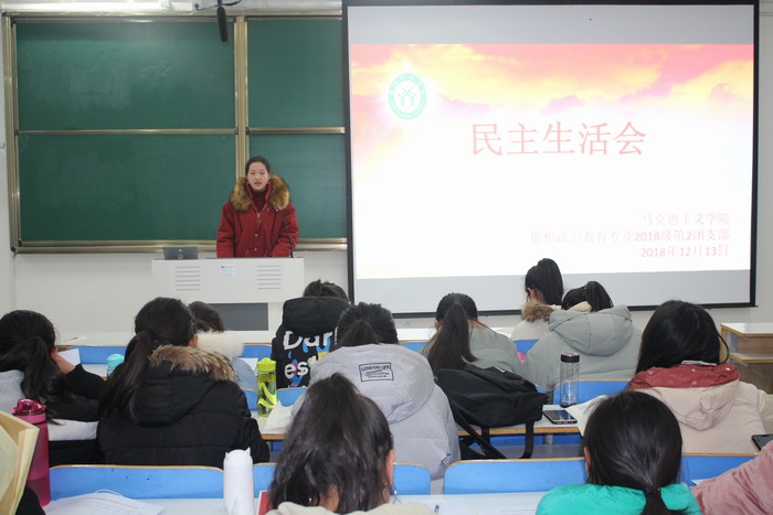 12月13日下午,我院2018级思想政治教育第二团支部在社科楼514教室开展民主生活会。2018级思想政治教育第二团支部全体同学共同参与本次班会。班会由团支部书记黄子晋主持。