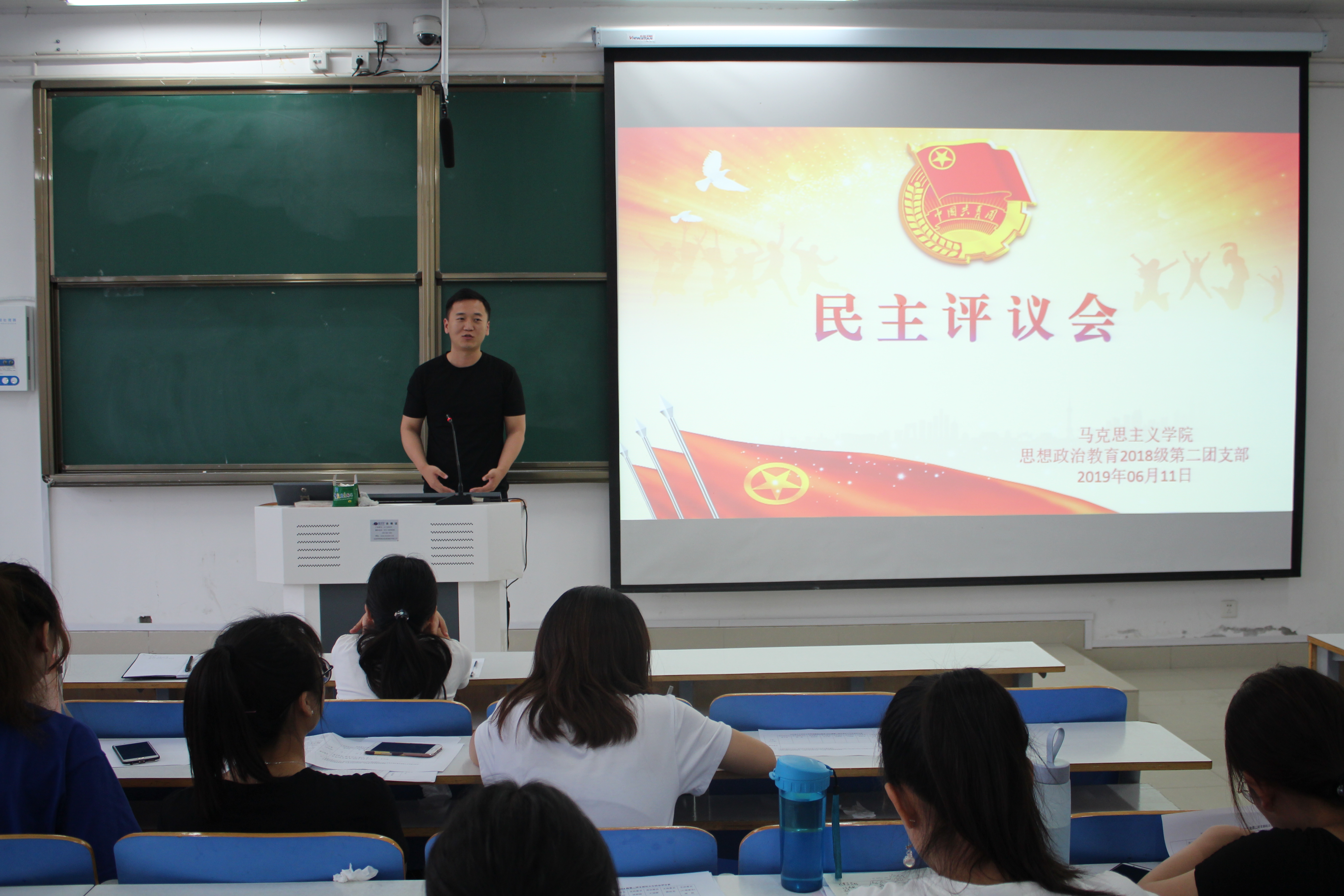 6月11日下午,ok138cn太阳集团5292018级第二团支部在社科楼516教室开展了民主评议会。我院团委书记曹栋、团委老师曹菁菁、学生会主席团及2018级第二团支部全体成员共同参加了本次会议。会议由团支部书记黄子晋主持。