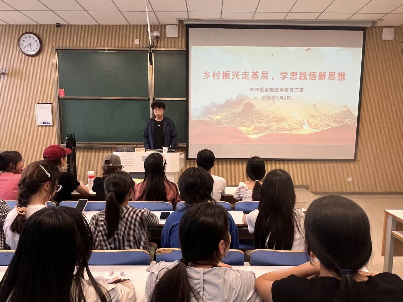 6月6日上午,ok138cn太阳集团5292023级思想政治教育三班在社科楼515召开“乡村振兴走基层,学思践悟新思想”主题团课。我院2023级思想政治教育三班全体同学共同参与本次团课,团课由团支书郝瀚主持。
