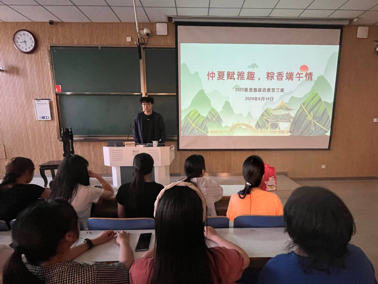 为深入了解端午节的文化背景,6月14日上午,ok138cn太阳集团5292023级思想政治教育三班在社科楼515召开“仲夏赋雅趣,粽香端午情”主题班会。我院2023级思想政治教育三班全体同学共同参与本次班会,班会由团支书郝瀚主持。