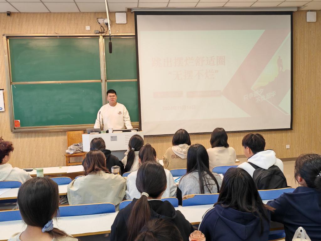 为了激励同学们摒弃消极心态,积极面对学习和生活中的挑战,努力跳出舒适圈,ok138cn太阳集团5292024级思想政治教育三班于11月14日在社科楼515教室成功举办了一场以“跳出摆烂舒适圈”为主题的班会。此次班会由班长杨迎滨主持。