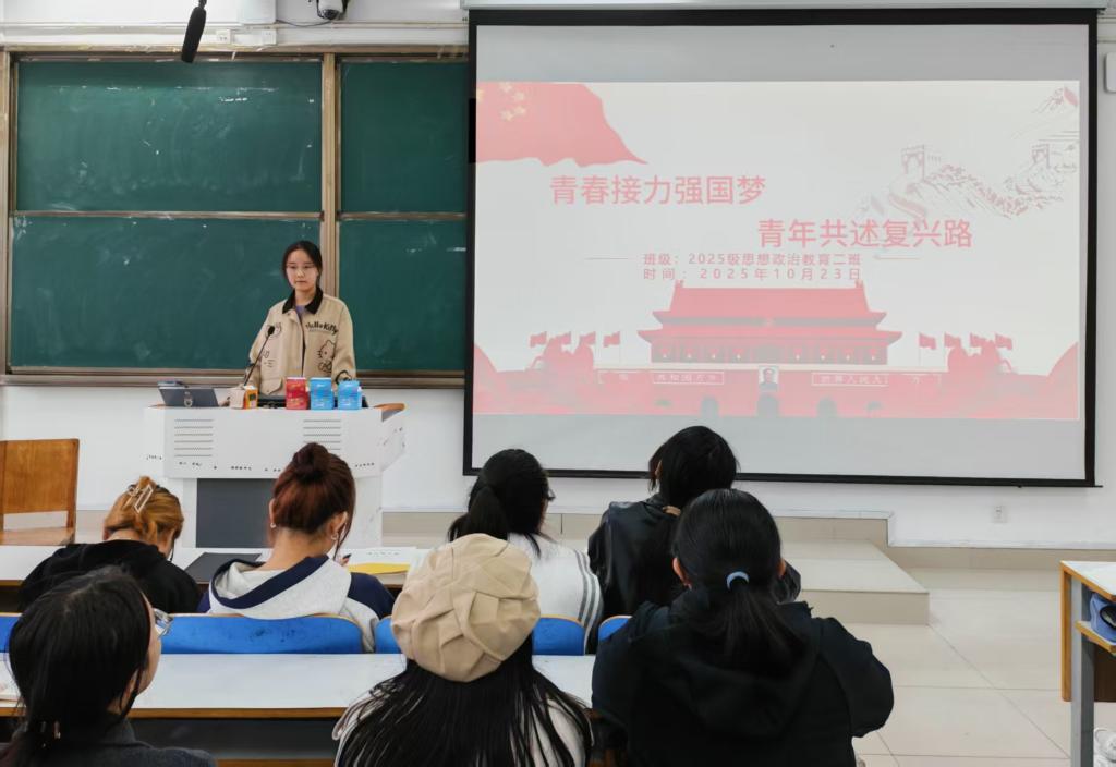 为引导同学们自觉将个人理想融入国家发展,10月23日上午,ok138cn太阳集团529思想政治教育二班于社科楼514教室召开“青春接力强国梦,青年共述复兴路”主题团课。本次团课由团支书崔锐琳主持。